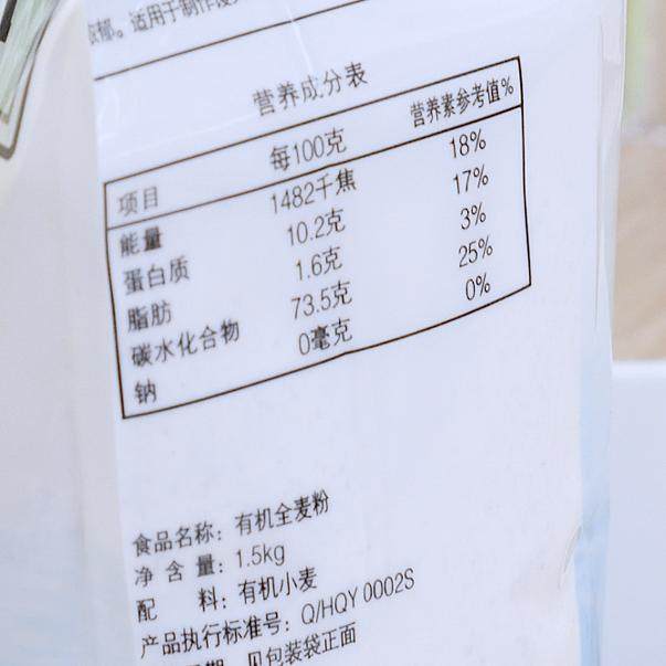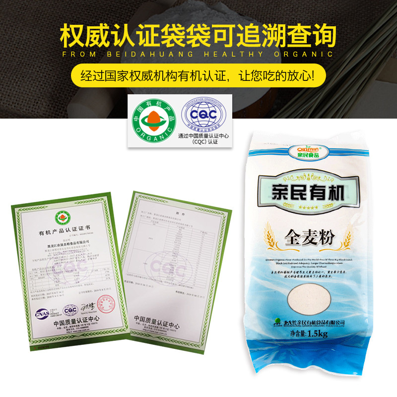有机全麦面粉北大荒亲民包子馒头无添加烘培1.5kg家用中筋通用