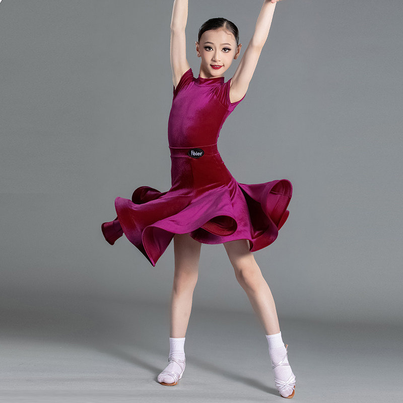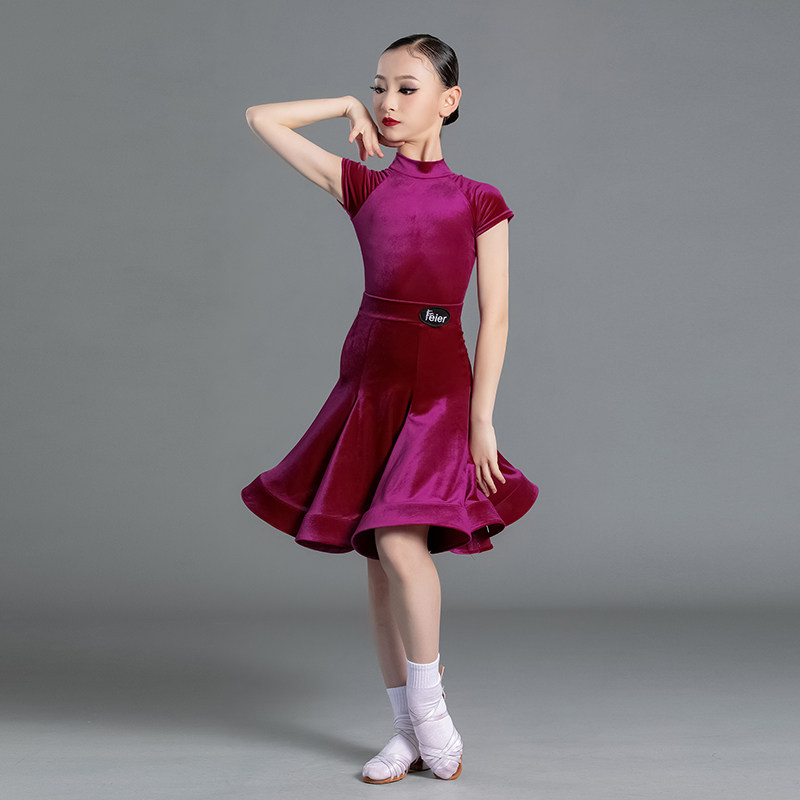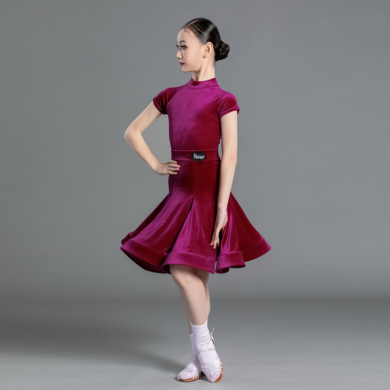 拉丁舞服女童比赛服儿童夏季短袖规定标准赛服2025新款女丝绒高级