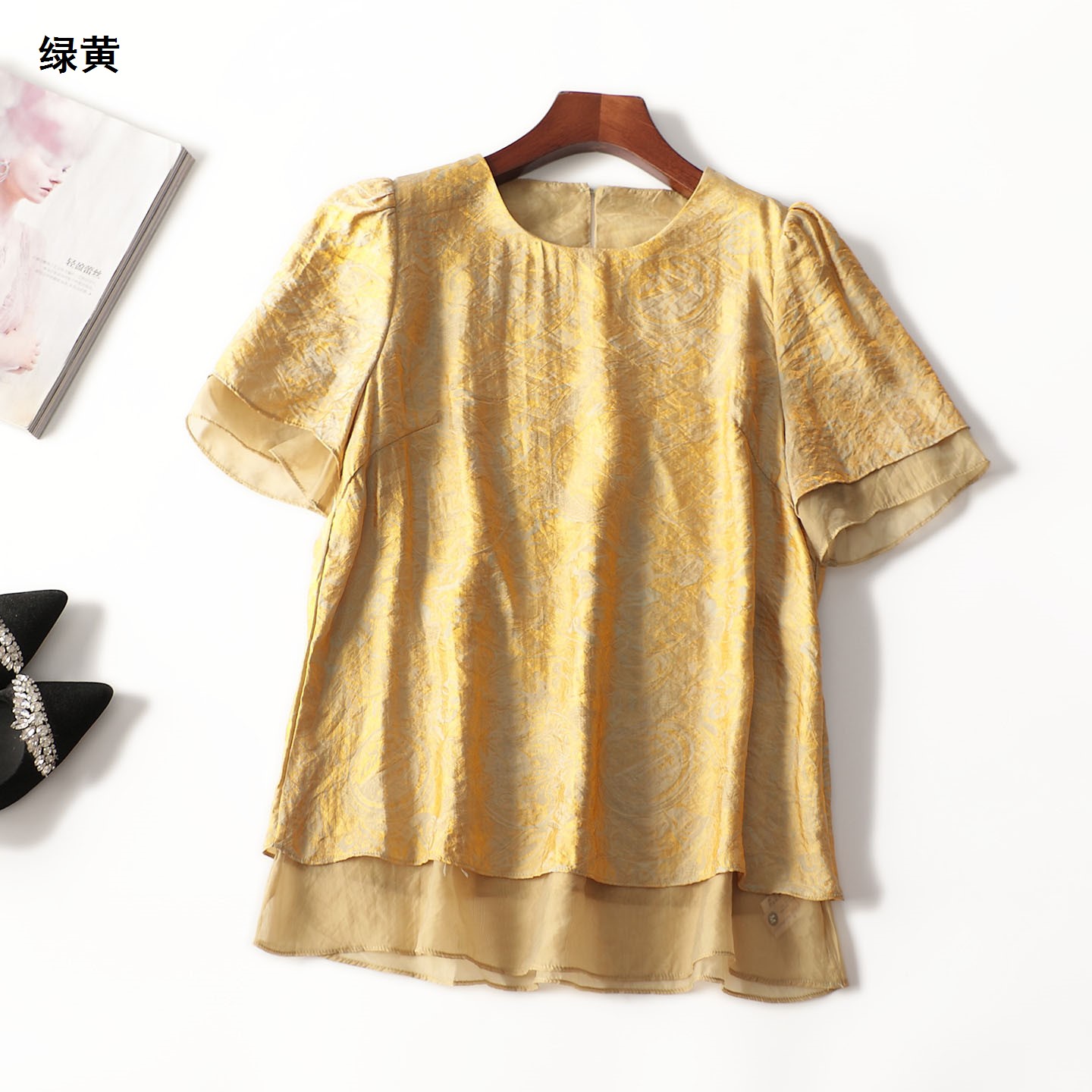411925 夏人丝上衣 女中长款短袖圆领现货