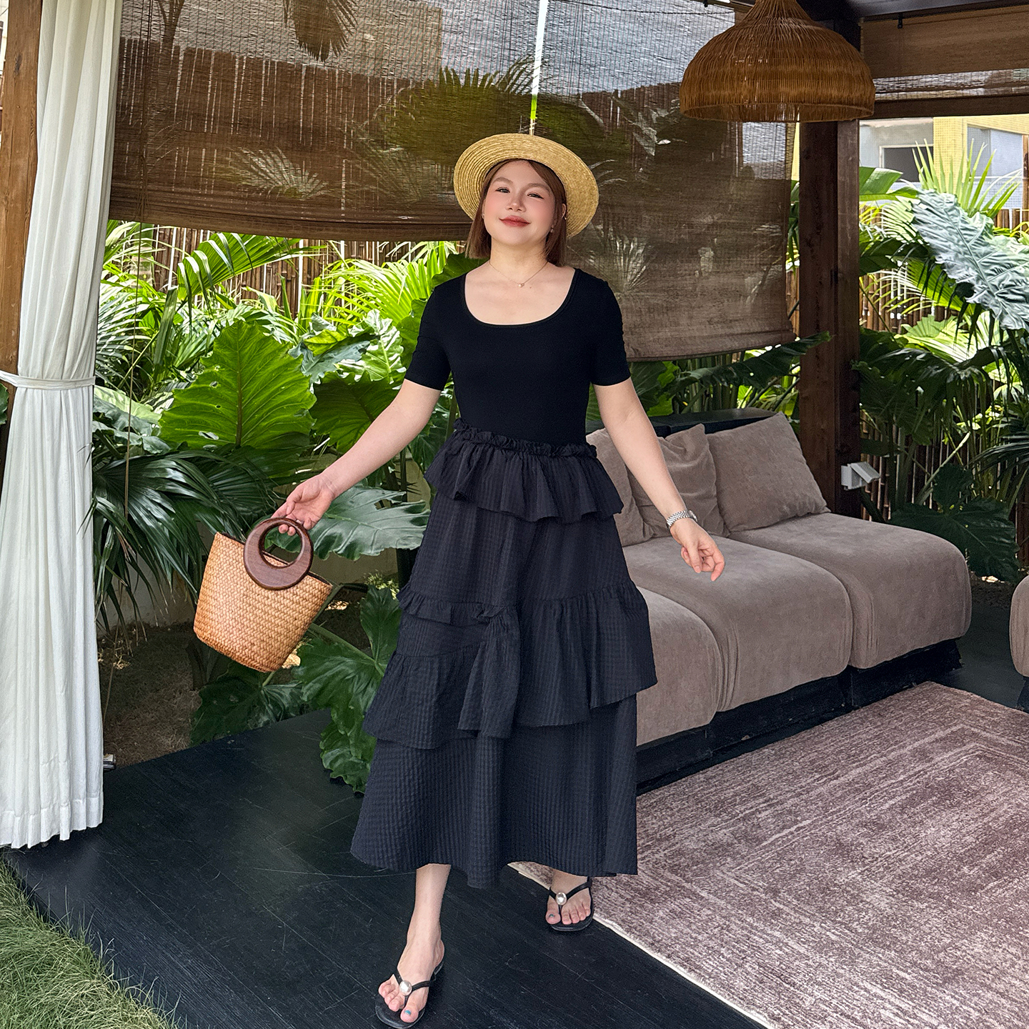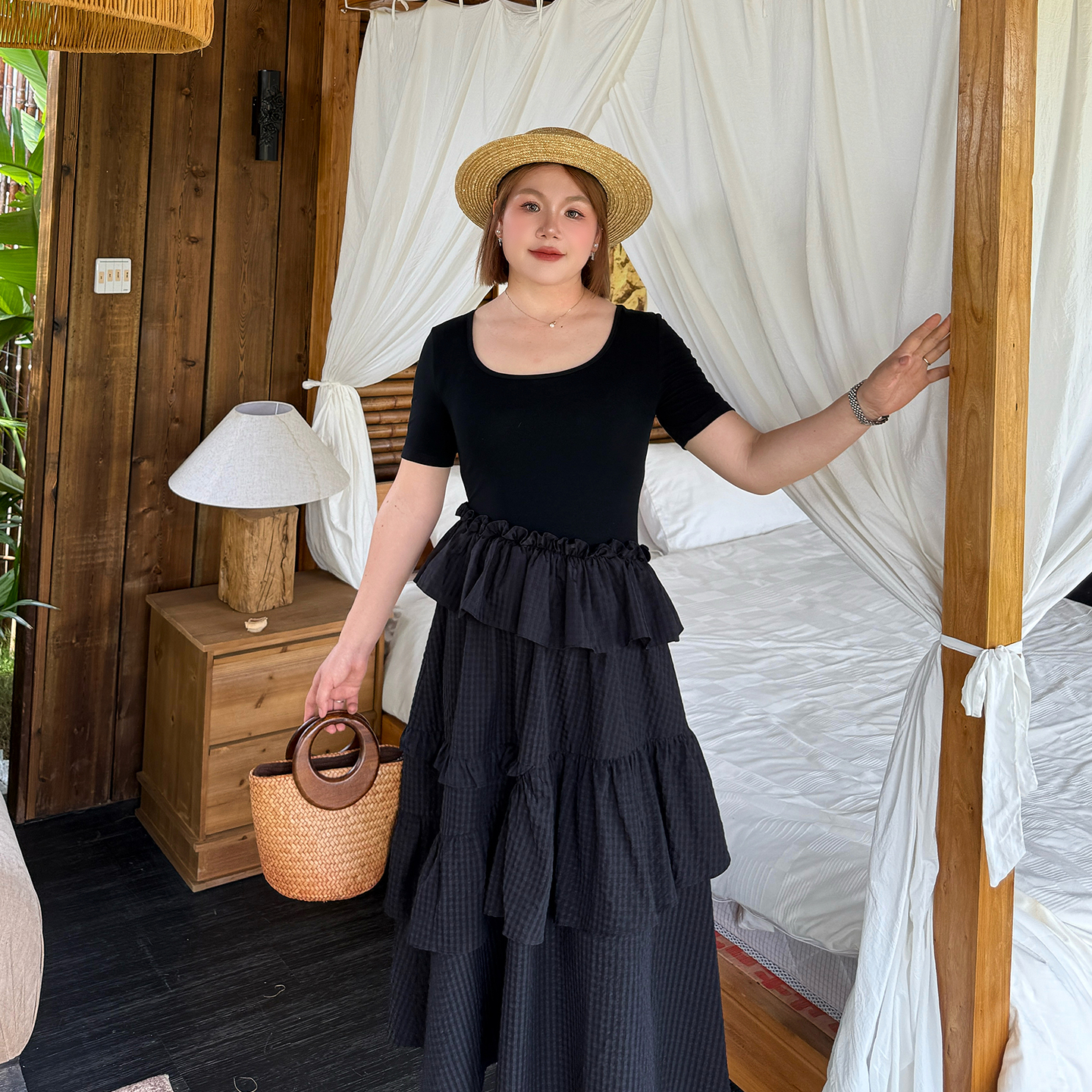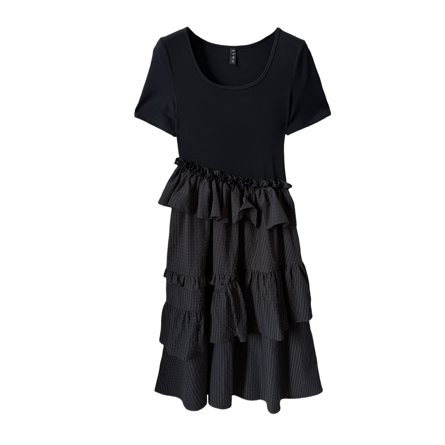 巨显瘦设计感蛋糕裙大码女装2025夏季胖妹妹mm收腰显瘦u领连衣裙