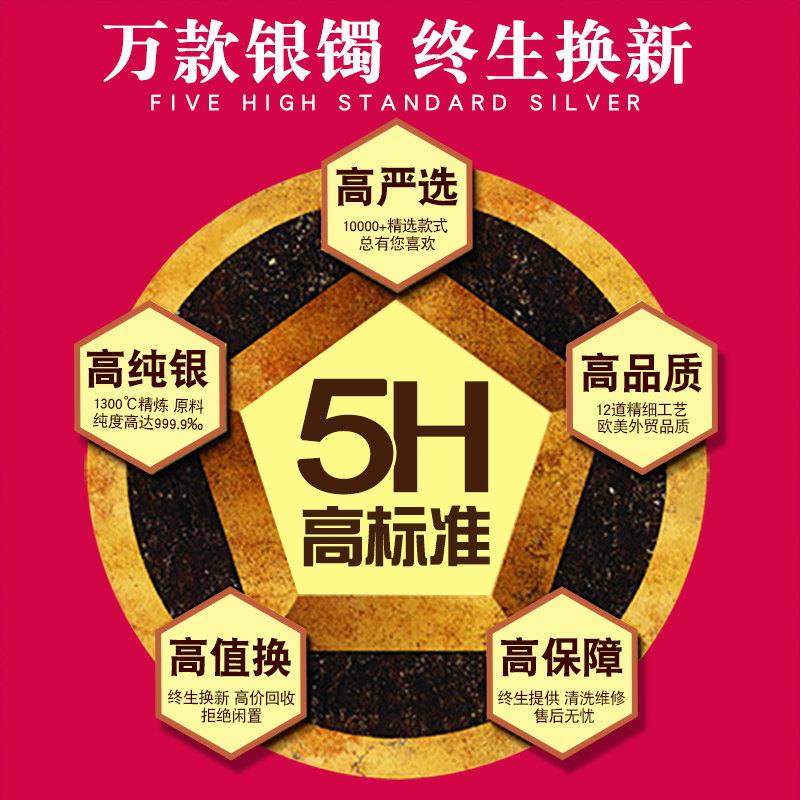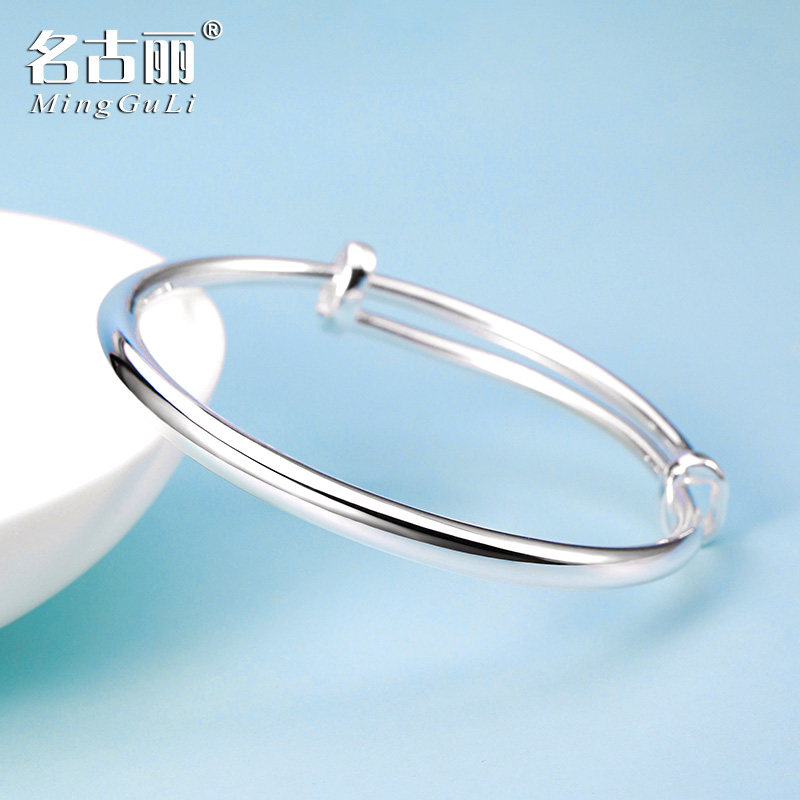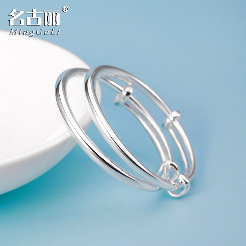 9999纯银手镯光面推拉足银手环实心宝宝婴儿童周岁满月小孩子成人