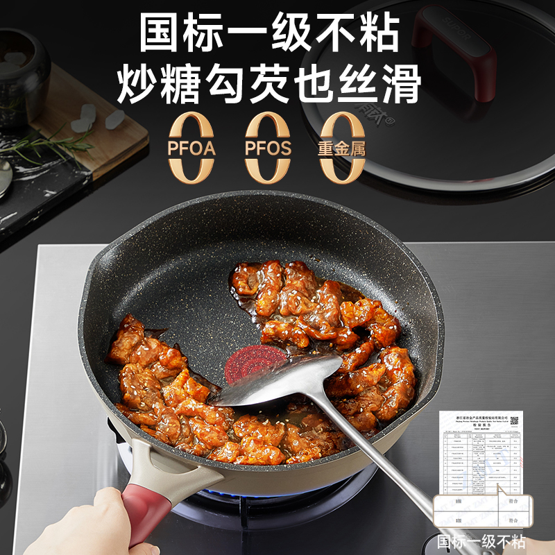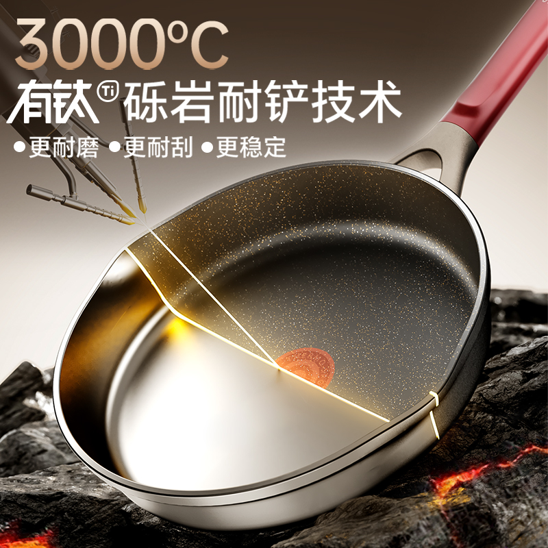 苏泊尔有钛不粘锅家用聚油平底锅红点煎锅电磁炉煤气灶通用炒菜锅