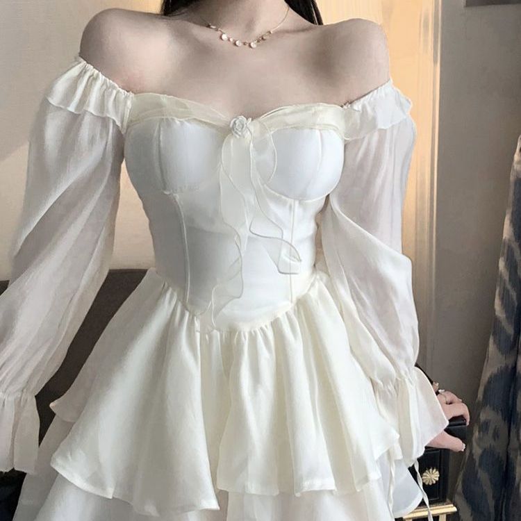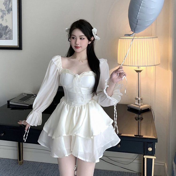 法式复古甜美长袖连衣裙2025秋季新款设计感高腰显瘦蓬蓬礼服裙子