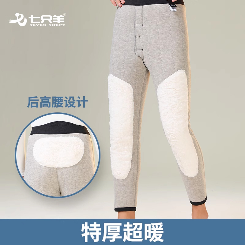 七只羊男士羊毛裤护腰冬季加厚棉裤保暖裤护膝东北绒裤打底裤2401