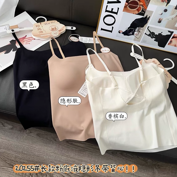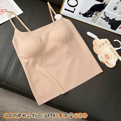 惠芝欣20255长款粉底液隐形背心防走光美背吊带女内搭带胸垫打底