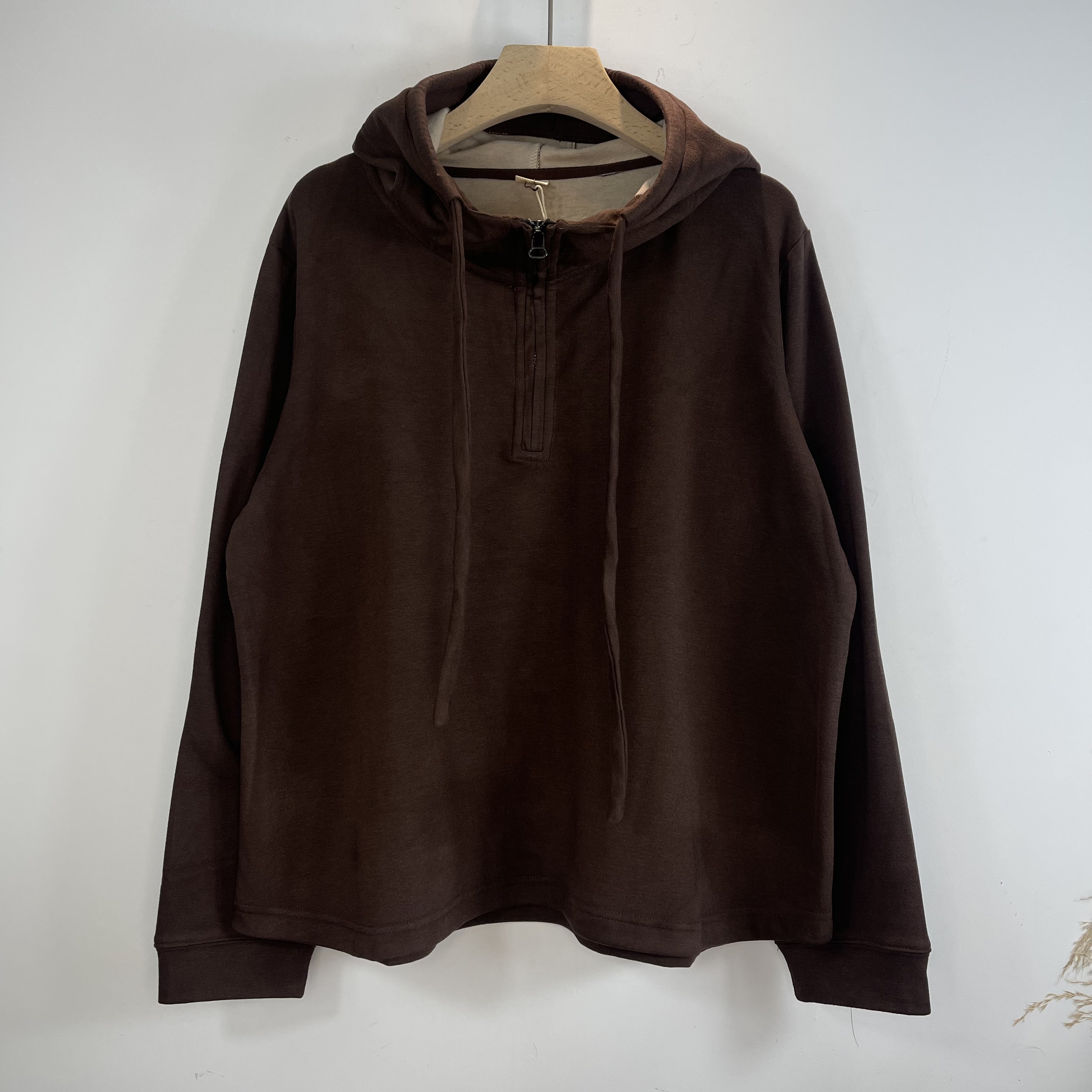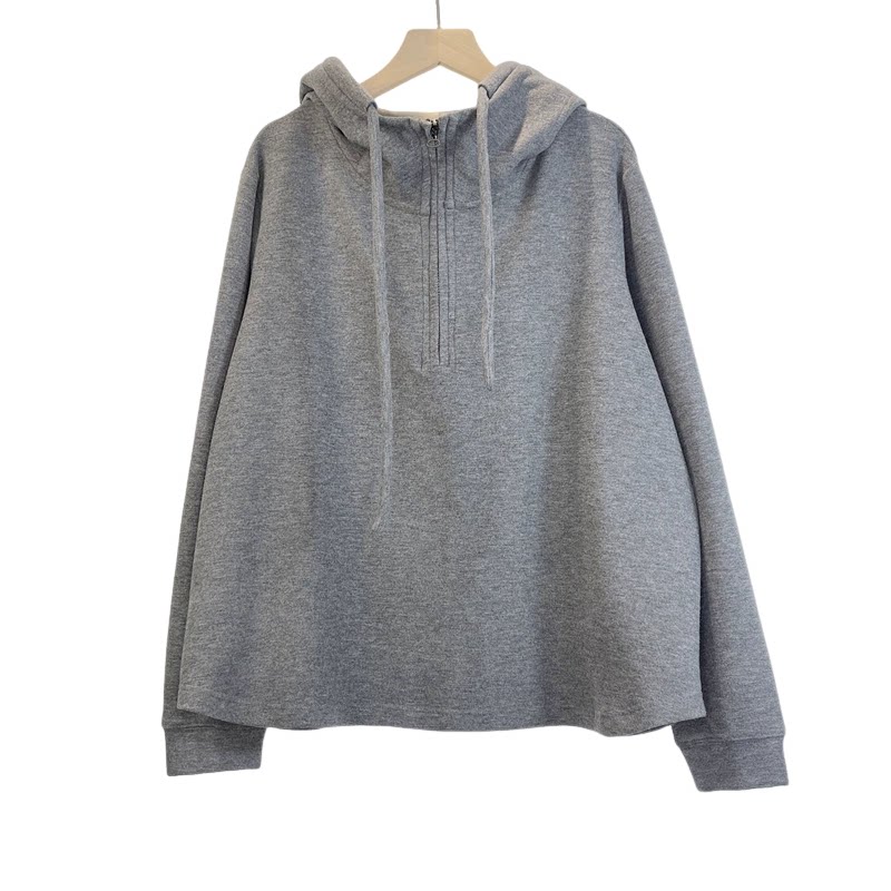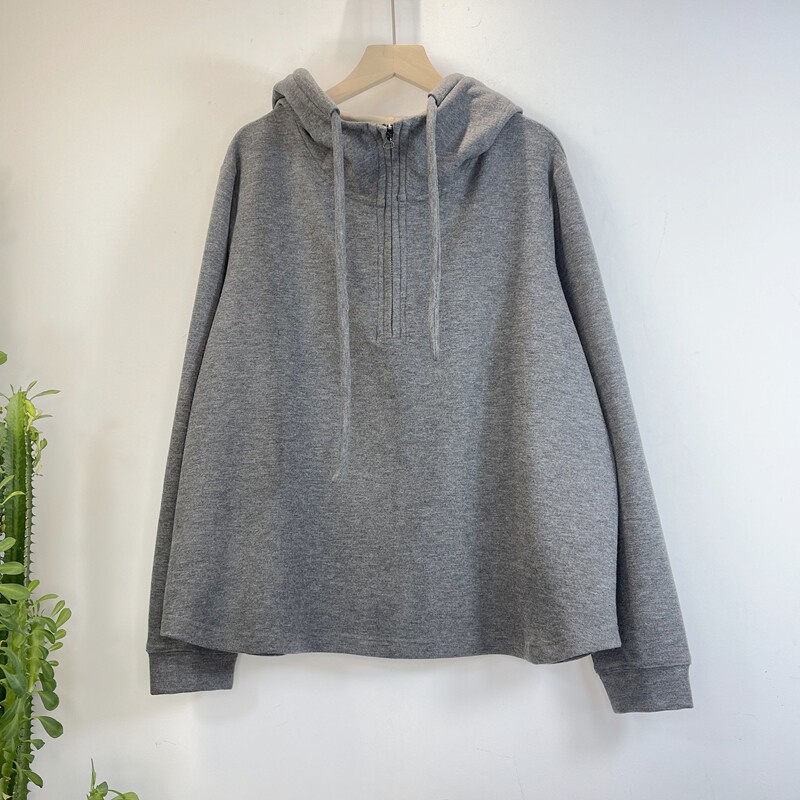 极简风连帽半拉链卫衣女宽松套头薄绒长袖灰色上衣