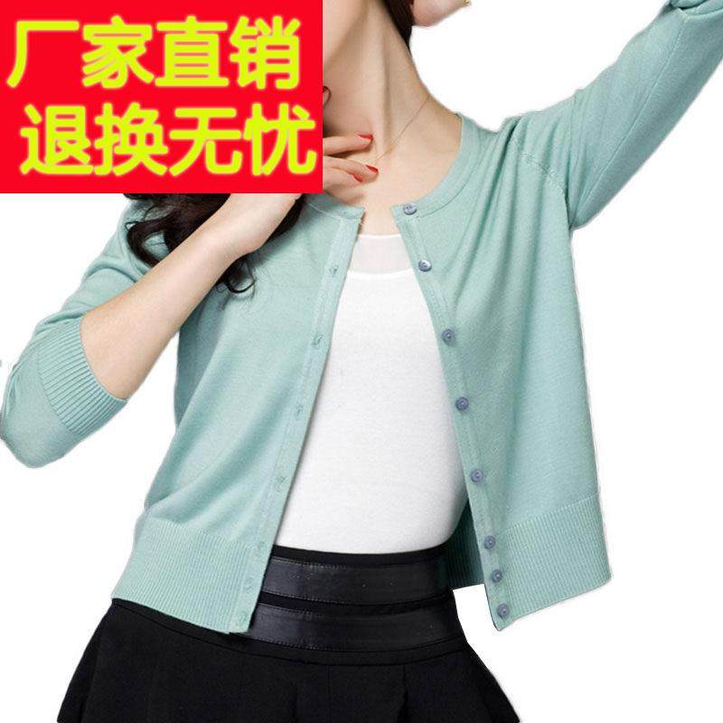 中国濮院市2025新款春装桑蚕丝开衫女短款防晒空调衫薄款针织外套