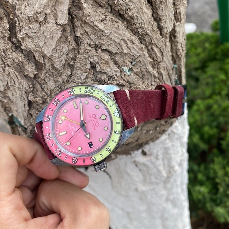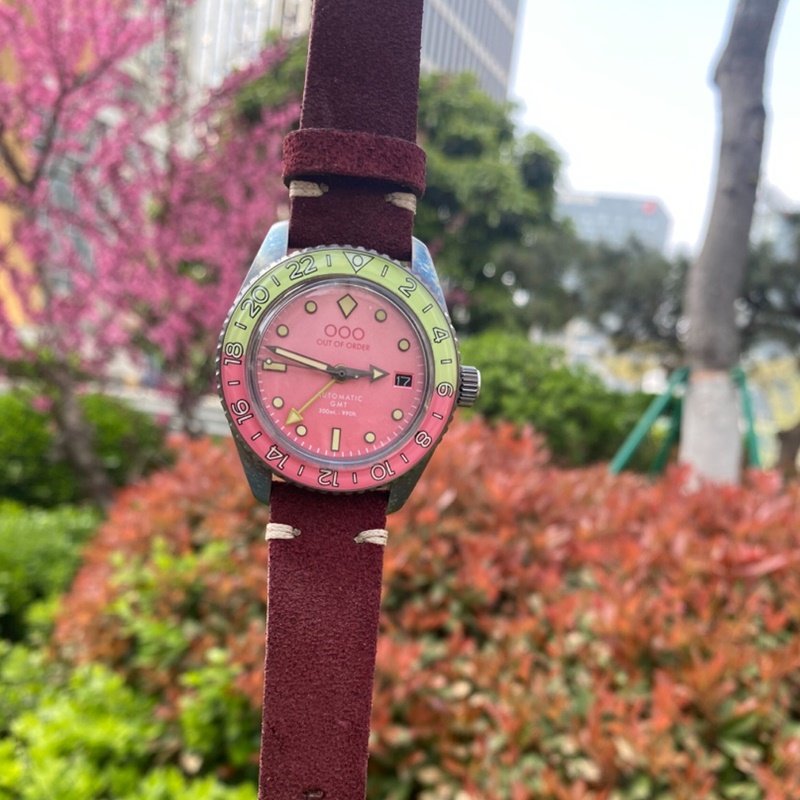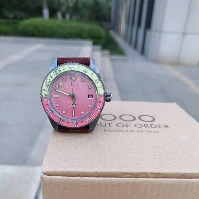 代购Out Of Order 自动机械手表男表粉色表盘复古做旧 OOO.001-2