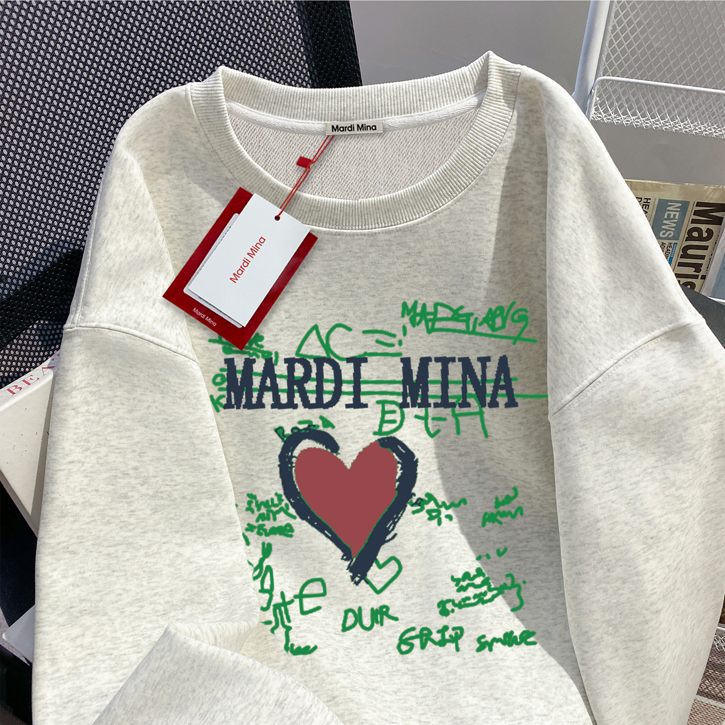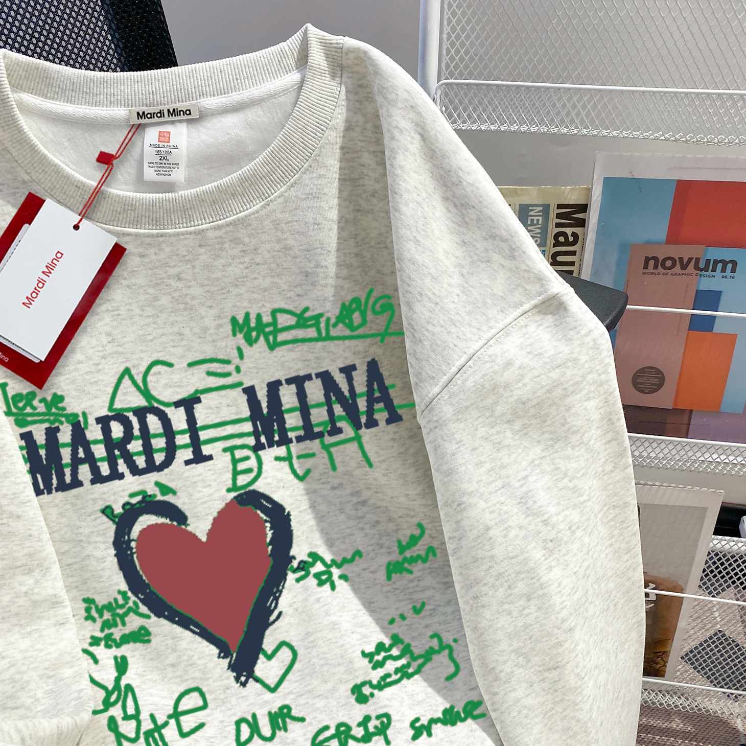 mardi卫衣中大儿童装爱心字重磅纯棉圆领男女秋季长袖上衣亲子装