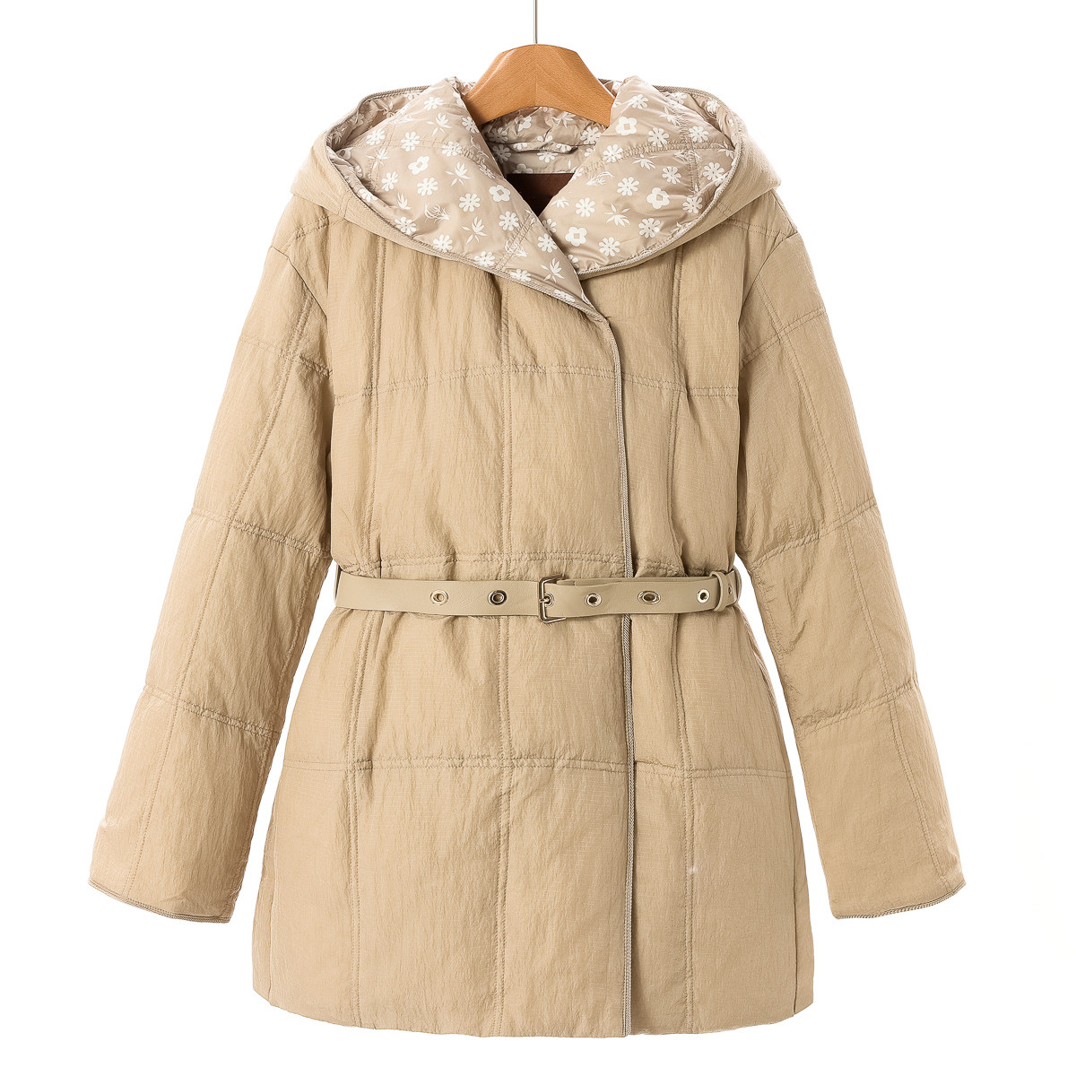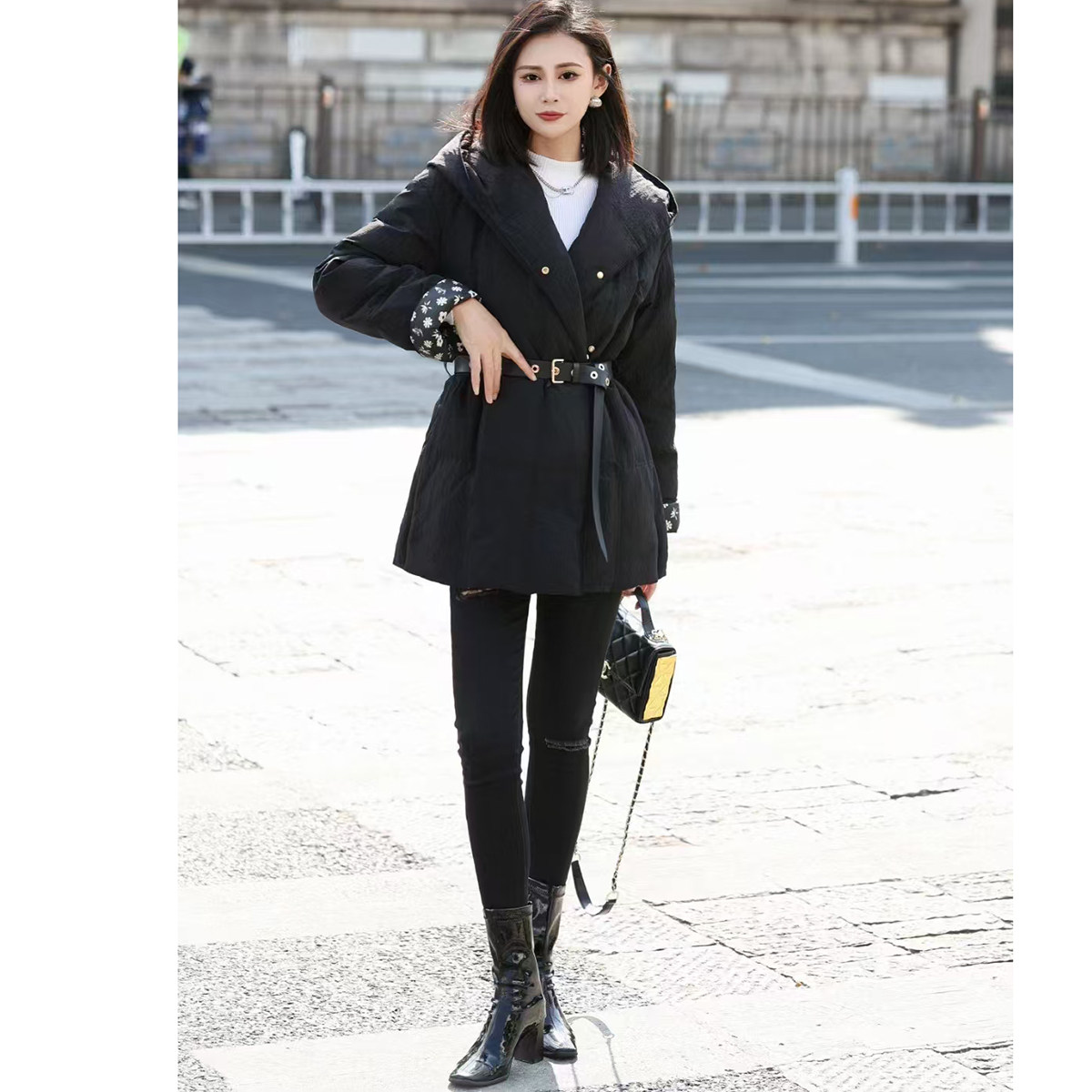 专柜7388鹅绒服【欧弟N】冬装 连帽暗扣内里印花送腰带羽绒服307