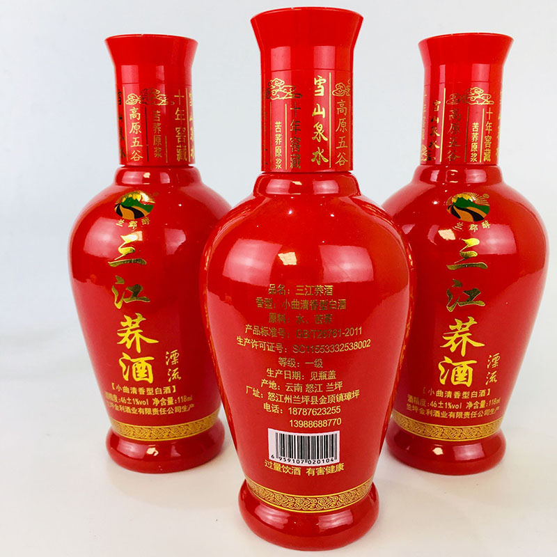 云南特产兰坪三江荞酒 118mlx8瓶怒江苦荞酒46度红瓶小曲清香型