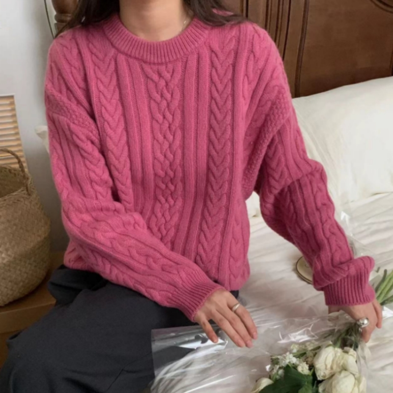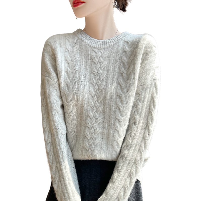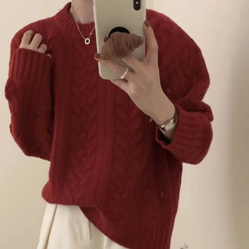 羊范100%纯羊毛复古套头麻花毛衣女24年秋冬新款慵懒风宽松针织衫