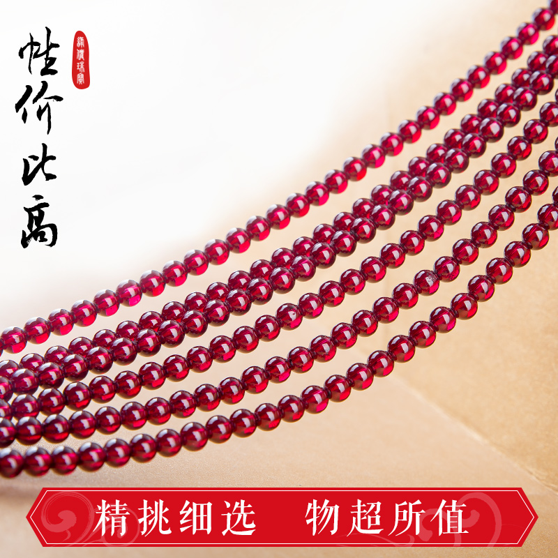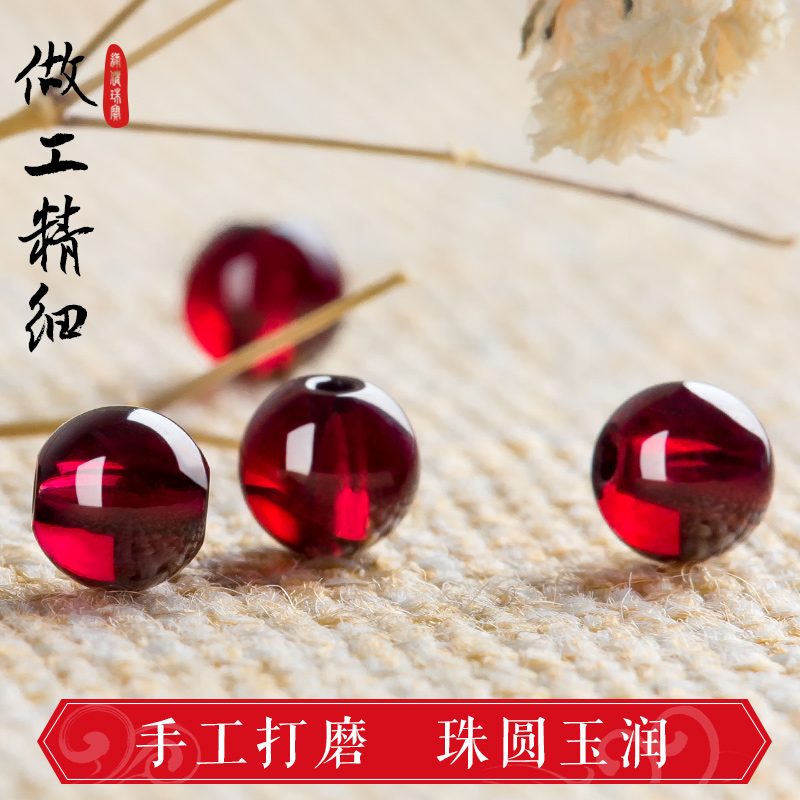 天然水晶石榴石散珠单颗圆珠子酒红色半成品手链项链耳饰diy饰品