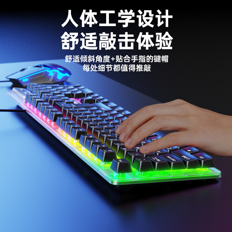 AOC有线KM100键盘鼠标套装机械手感发光USB通用电竞游戏笔记本