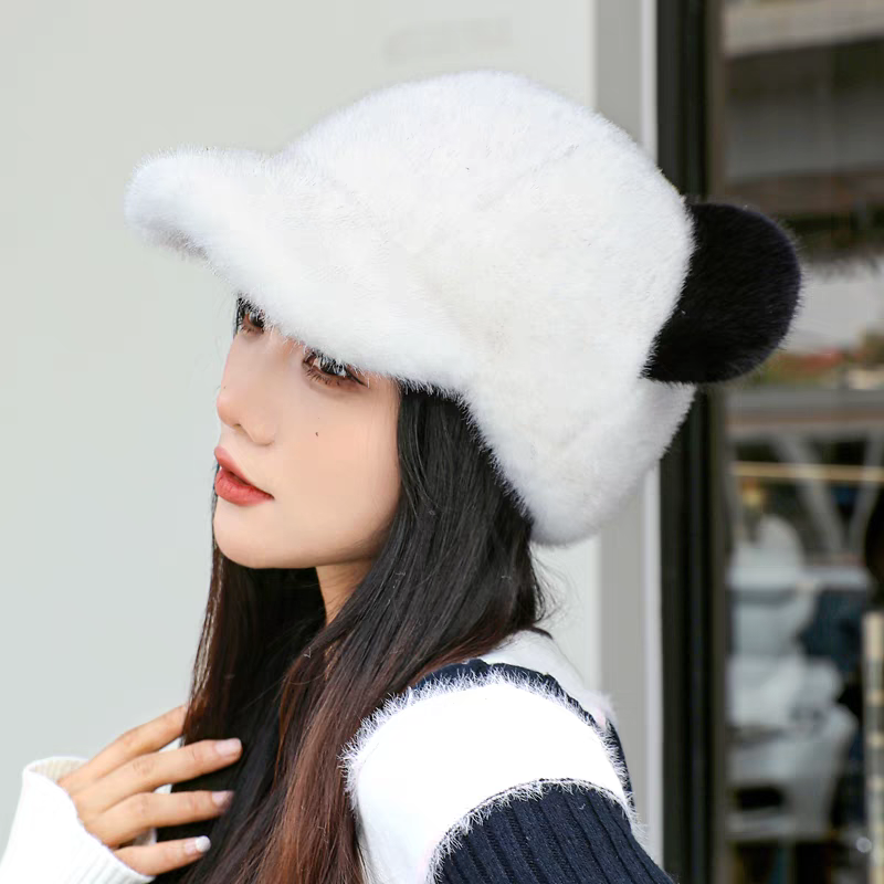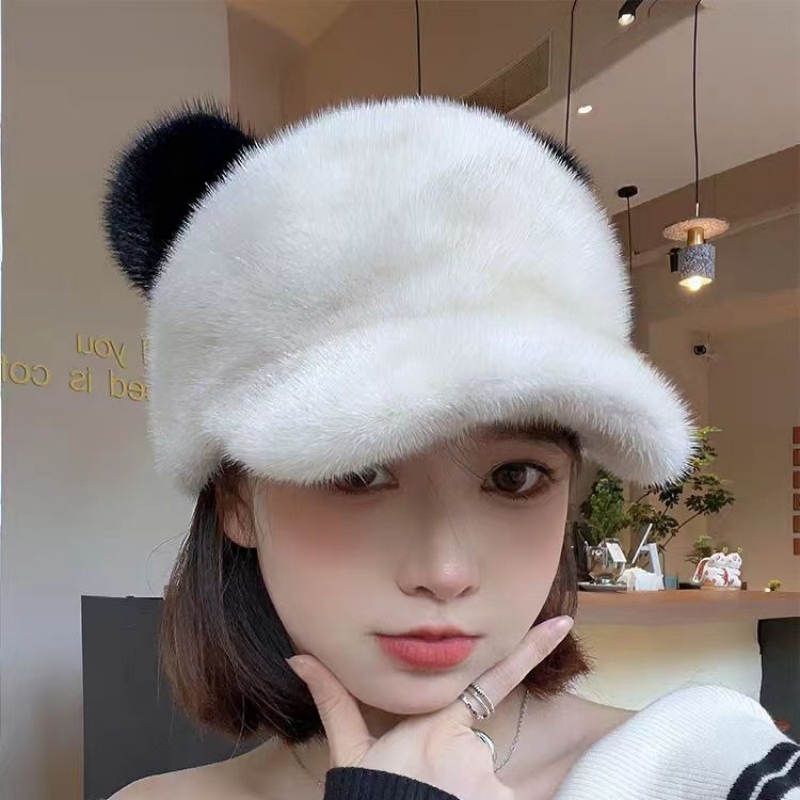 仿貂毛帽子女冬天毛绒米奇耳朵鸭舌帽2024新款显脸小可爱保暖帽
