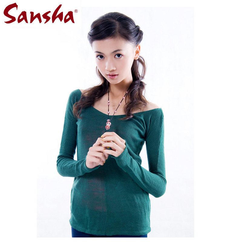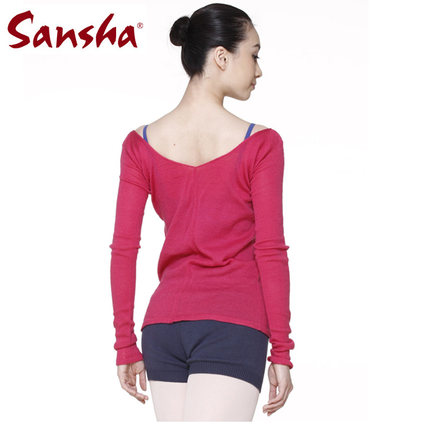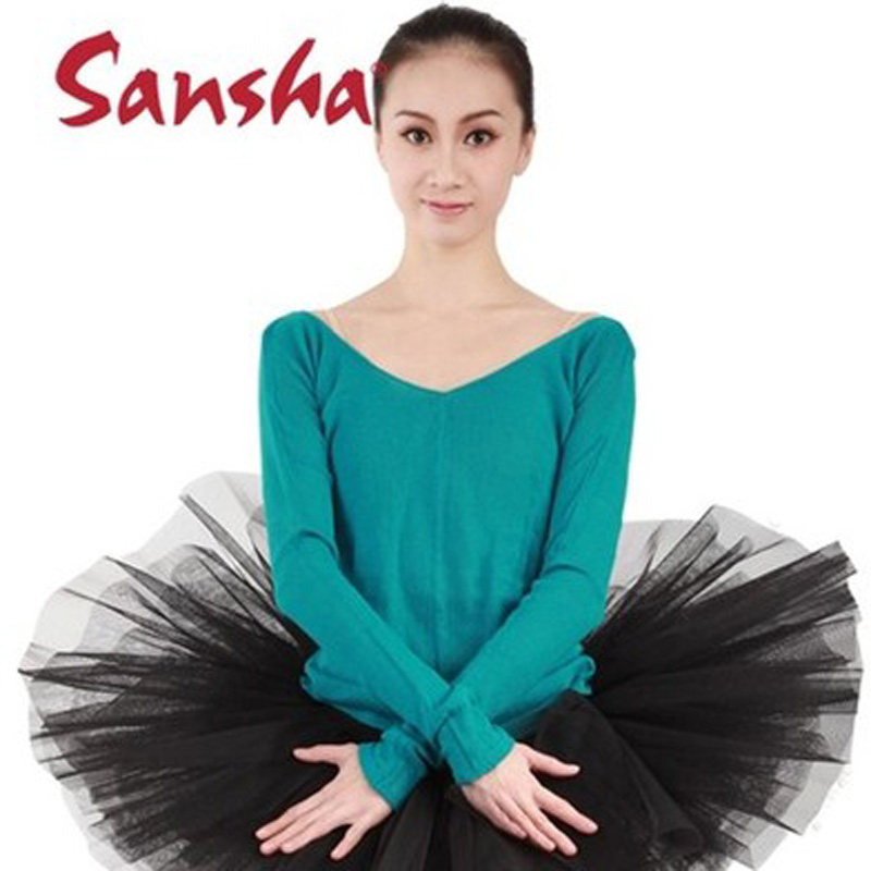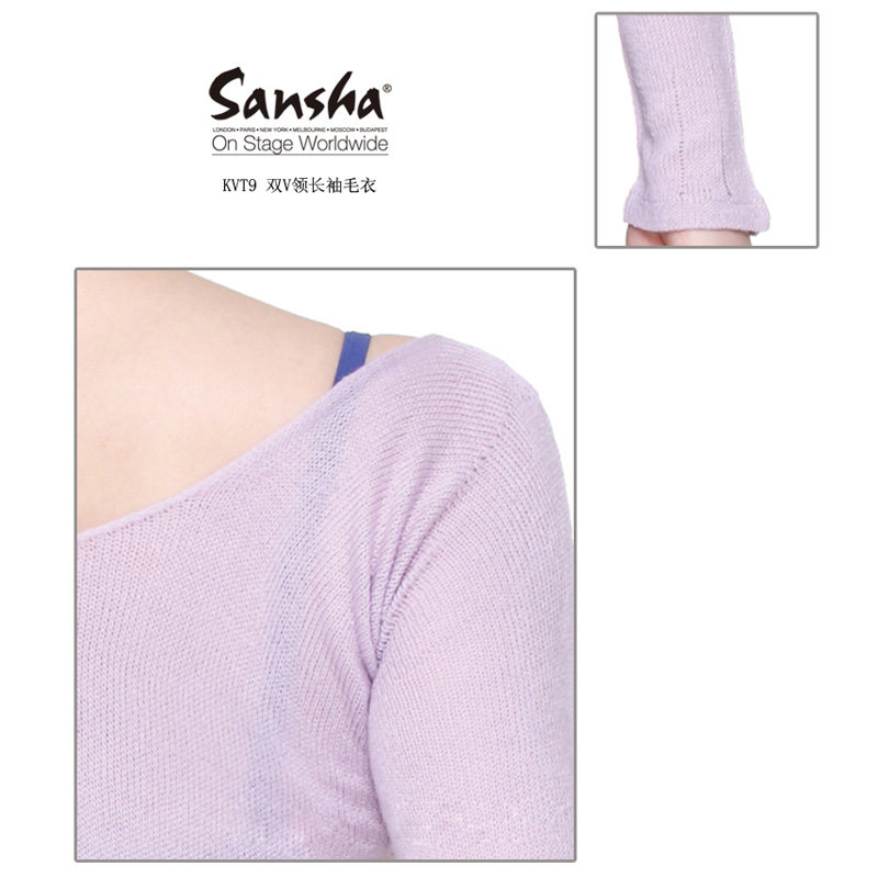 Sansha三沙芭蕾舞蹈服装成人保暖针织上衣双V长袖练功毛衣女KVT9