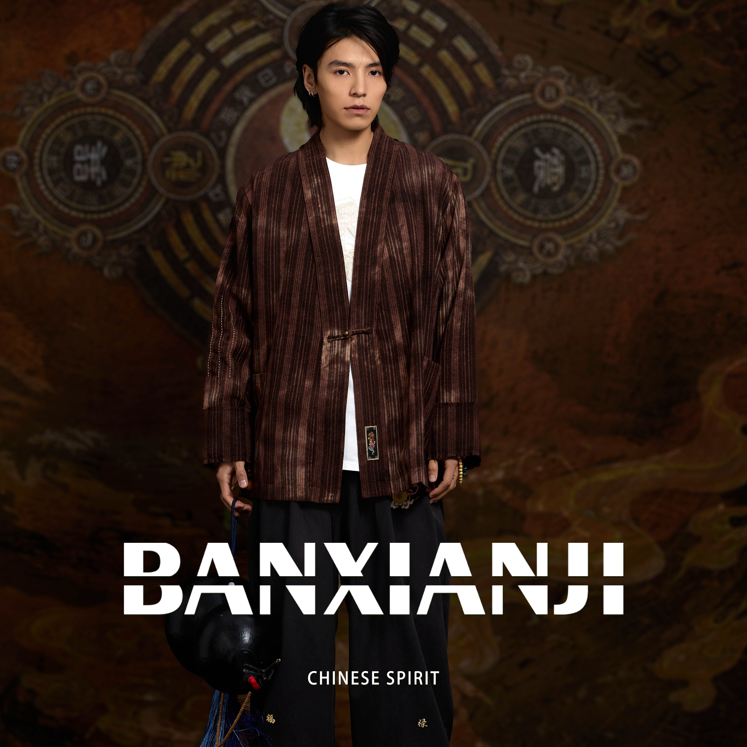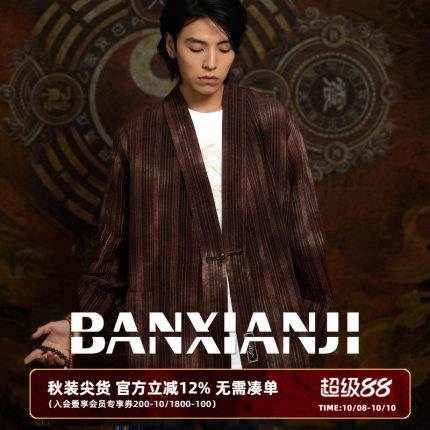 半闲集<修道>新款汉服男装红色中式唐装中国风国潮复古做旧外套