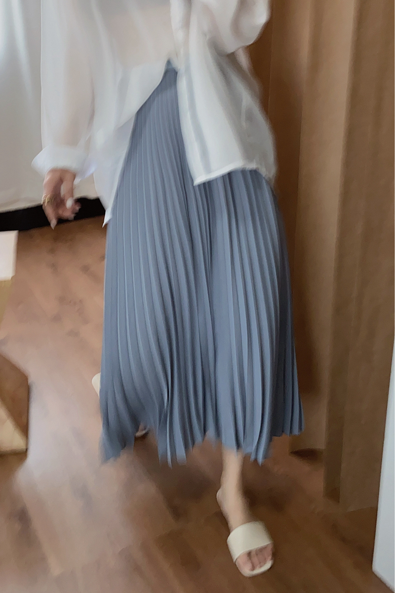 【雾满蓝垂感百褶裙】ENEY质感雪纺半身裙大摆飘逸垂感纯色半身裙