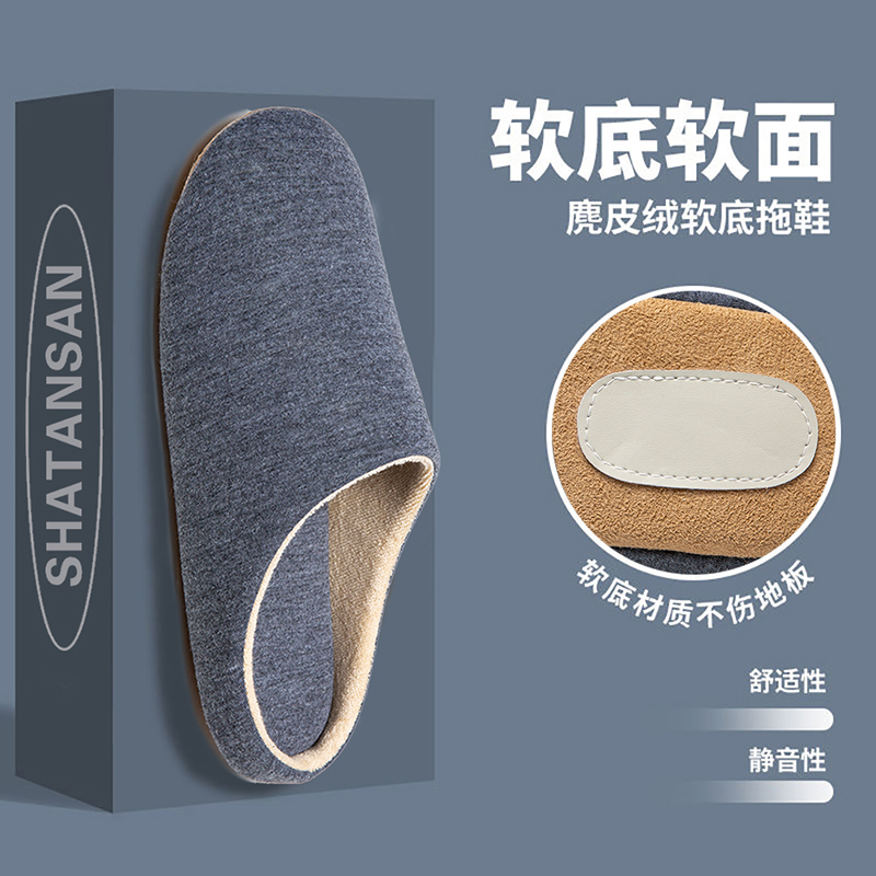 日式室内静音男女软底拖鞋家居布底木地板大码无声防滑秋冬棉拖鞋