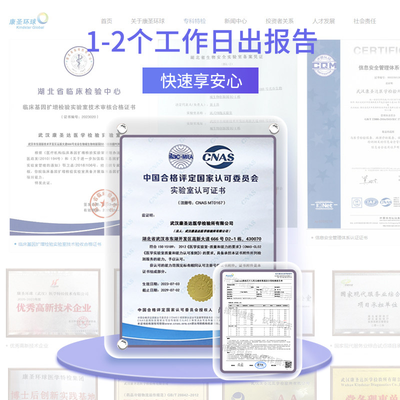 康圣环球 男女HPV分型定量定性检测隐私发货hpv口腔肛门检测自检