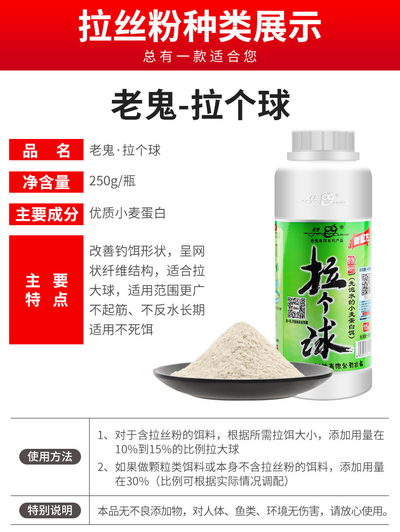 龙王恨老鬼拉丝粉瓶装拉个球正品野钓鱼饵料鱼食鲫鲤鱼钓饵西部风