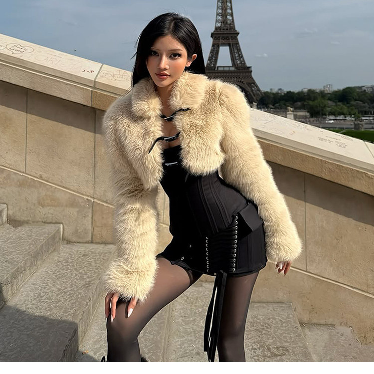 名媛千金辣妹高级感毛茸茸外套女
