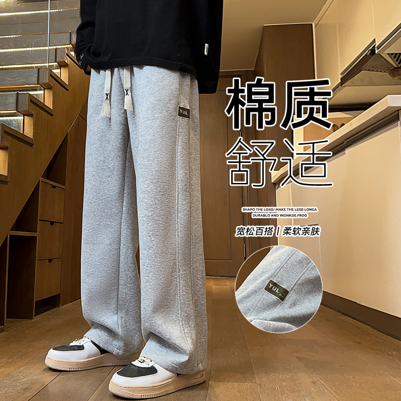 青少年男装帅气学生潮流加绒卫裤男2025新款秋冬宽松运动休闲