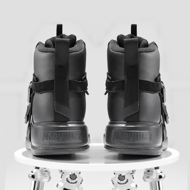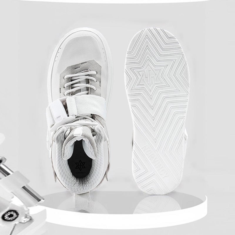 诺凡希白色高帮鞋男潮流皮面百搭小众厚底机车机能情侣款休闲板鞋