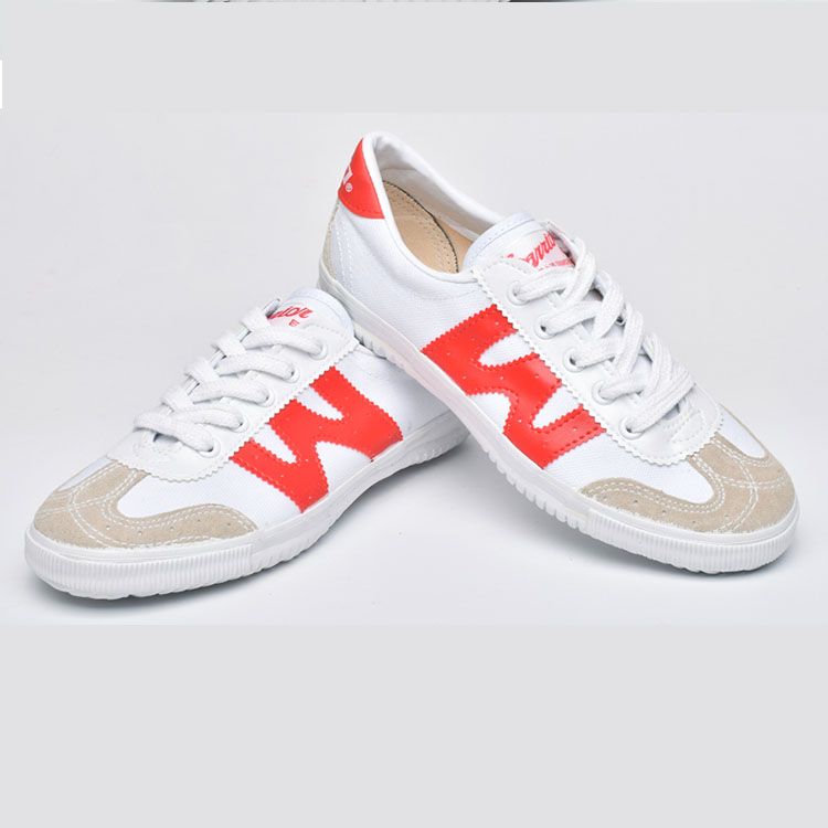 回力中考体育专用鞋学生校鞋运动鞋帆布鞋白色红边系带小白鞋WV-2