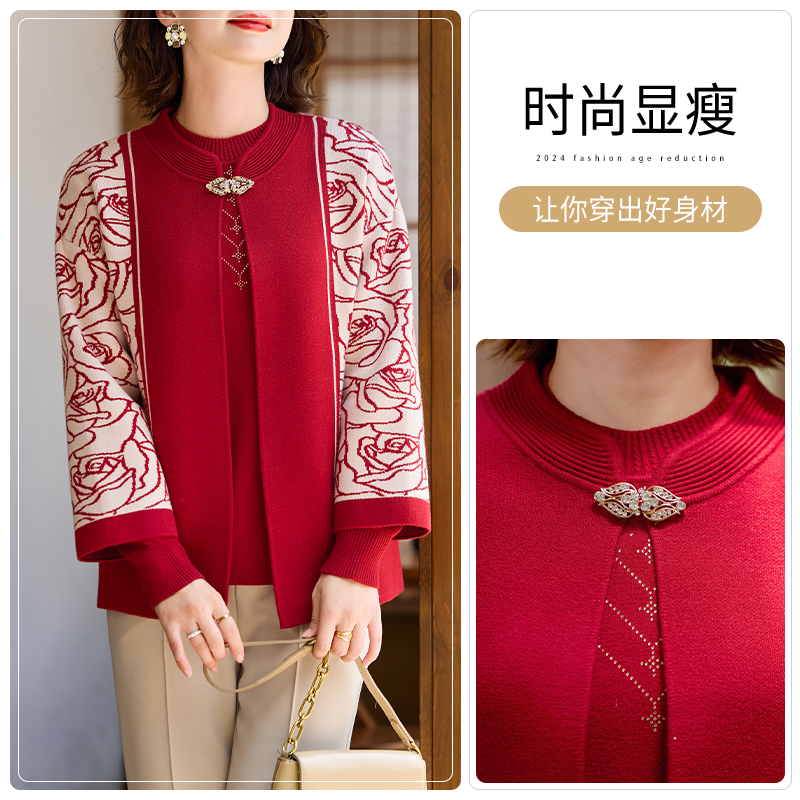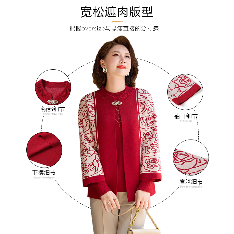 中年妈妈秋装新中式针织洋气国风上衣50岁40中老年女春秋开衫外套