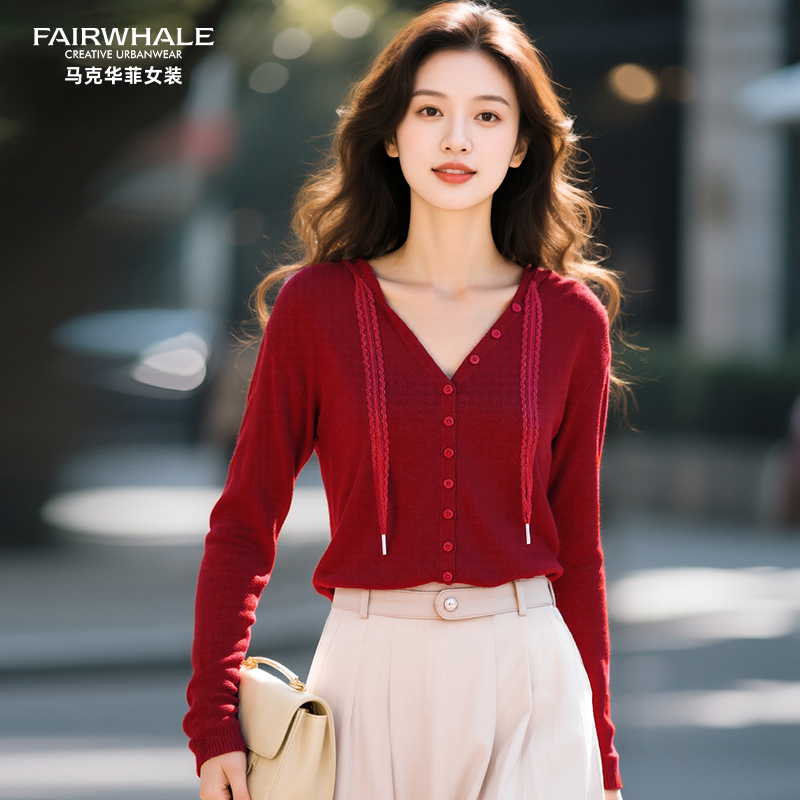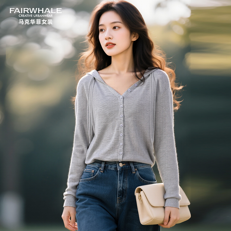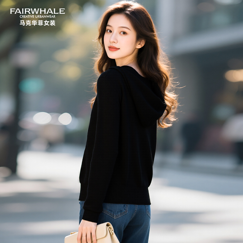 马克华菲女装韩系小清新连帽衫秋装新款卫衣开衫显瘦针织衫上衣女