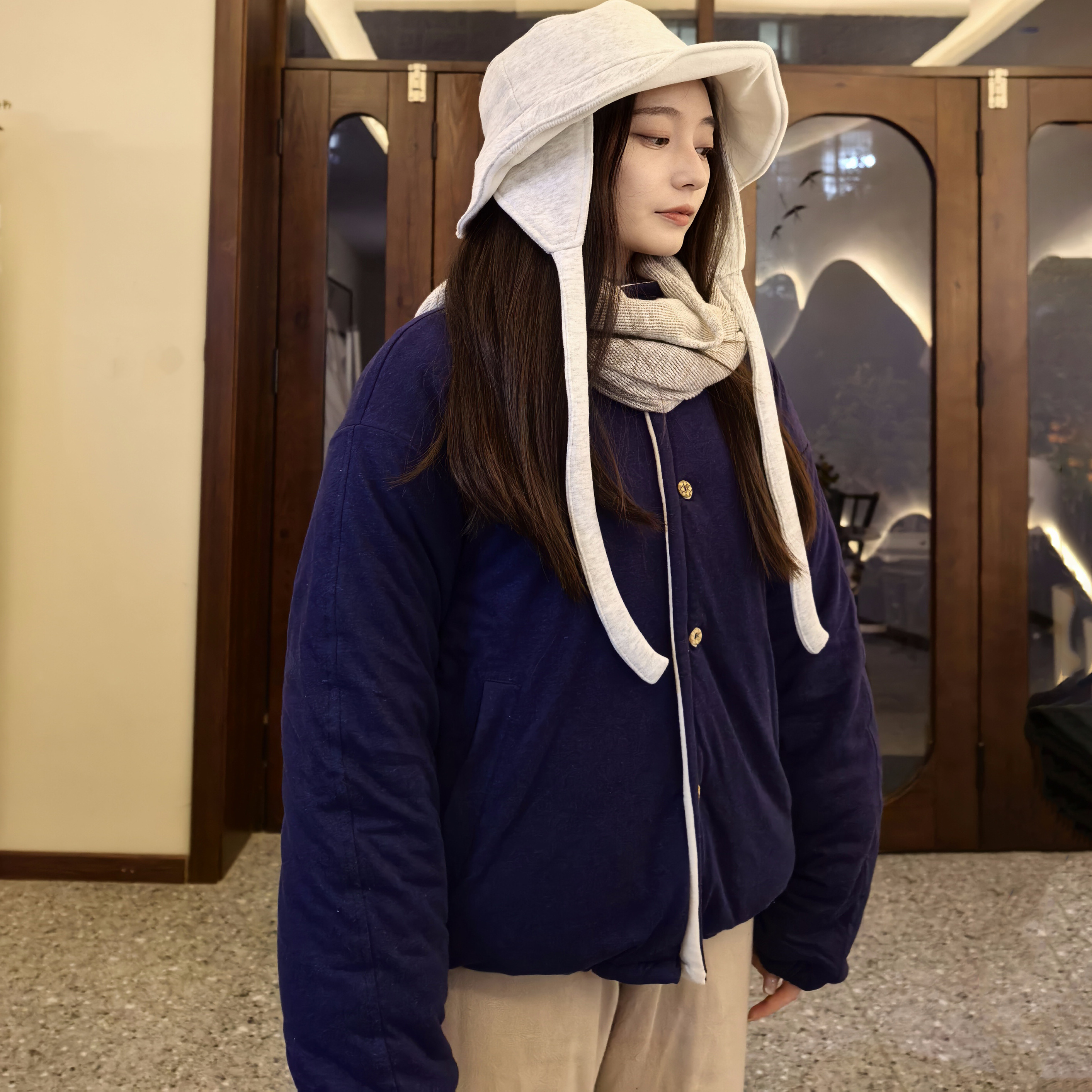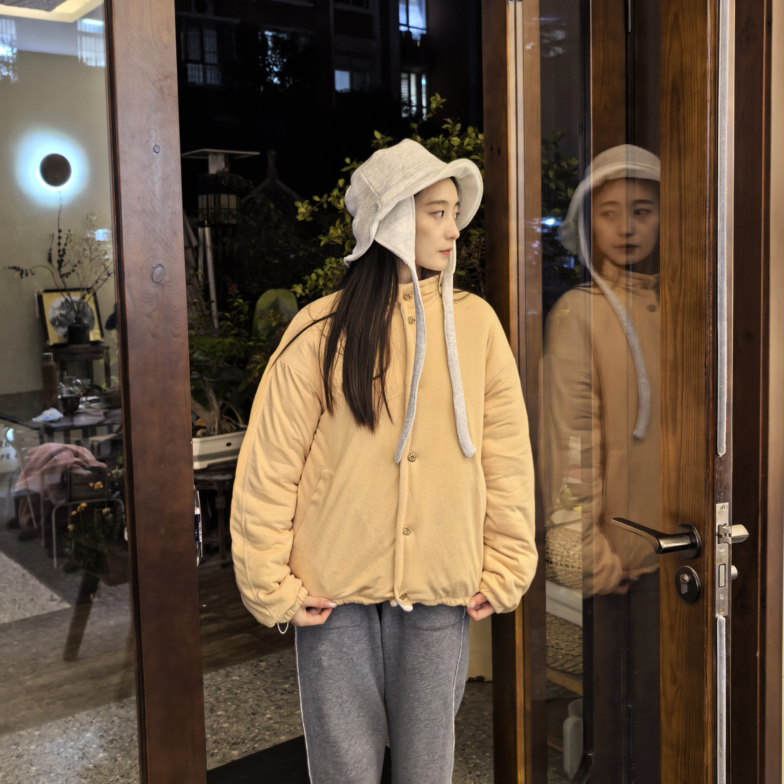 onrays|55%汉麻45%有机棉双面软糯加厚棉衣棉服高领短款外套