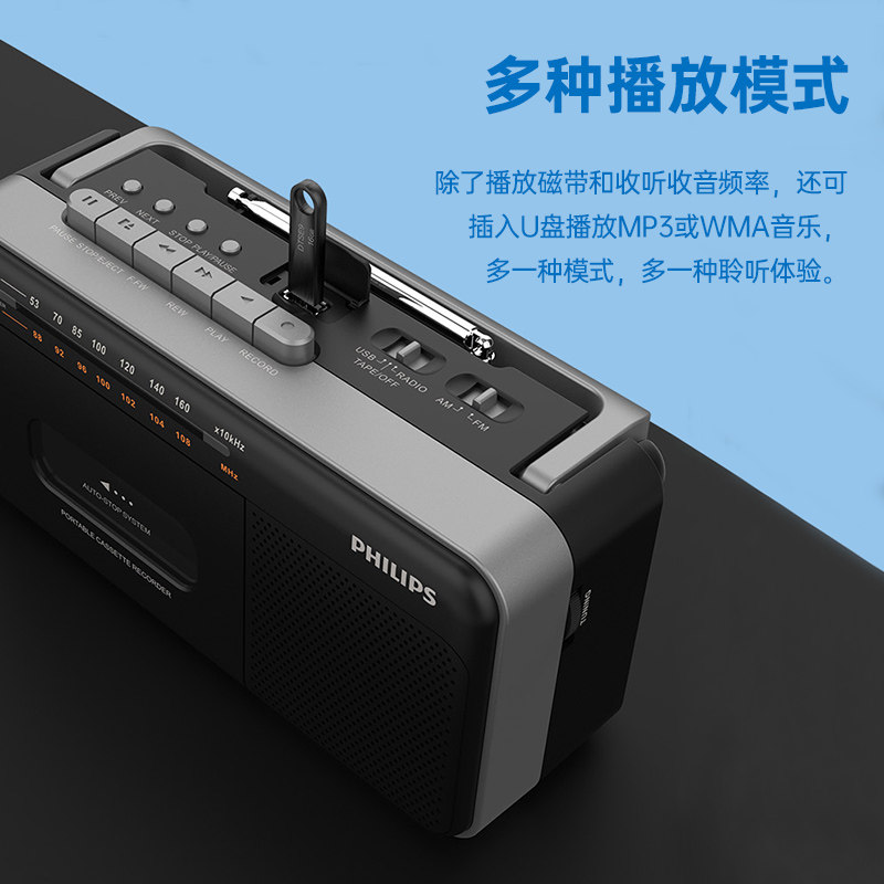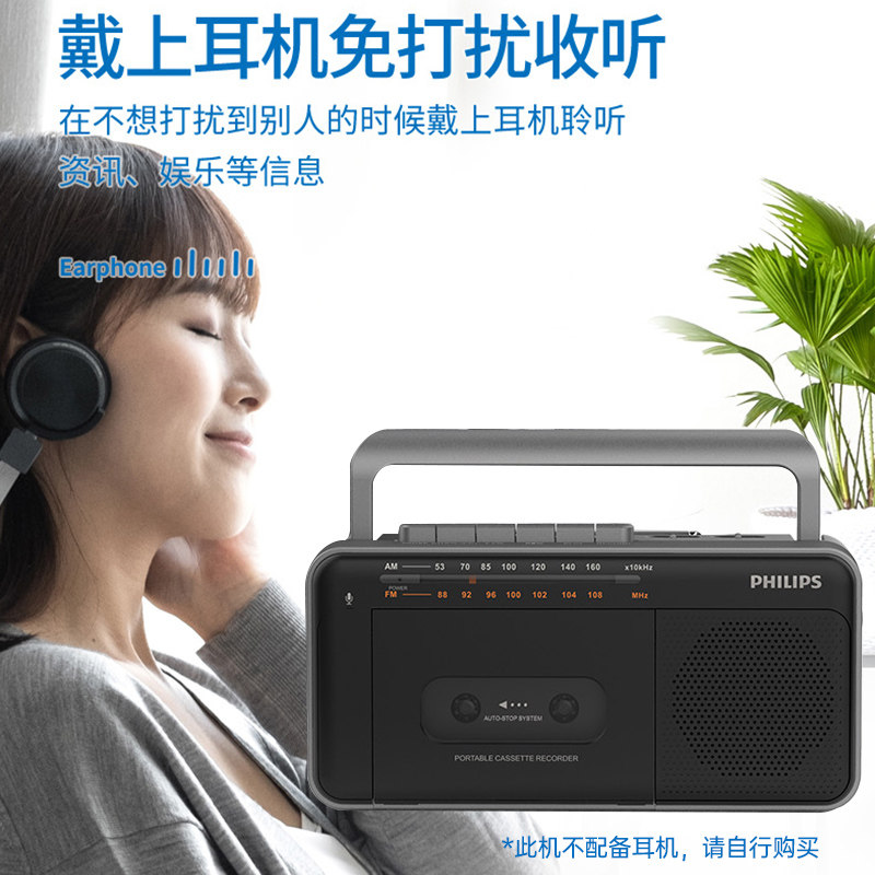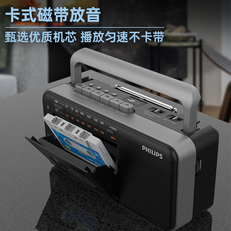飞利浦TAR3568老年FM调频收音机便携式磁带播放录音收录播放一体