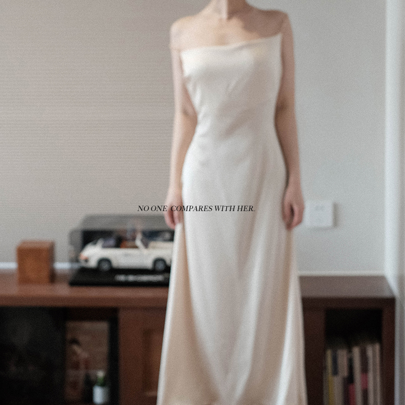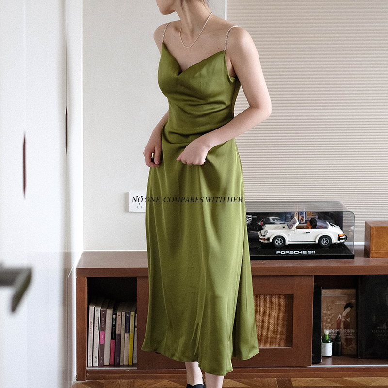 与她原创 经典缎面仿醋酸露背性感显瘦晨袍吊带长款连衣裙小礼裙