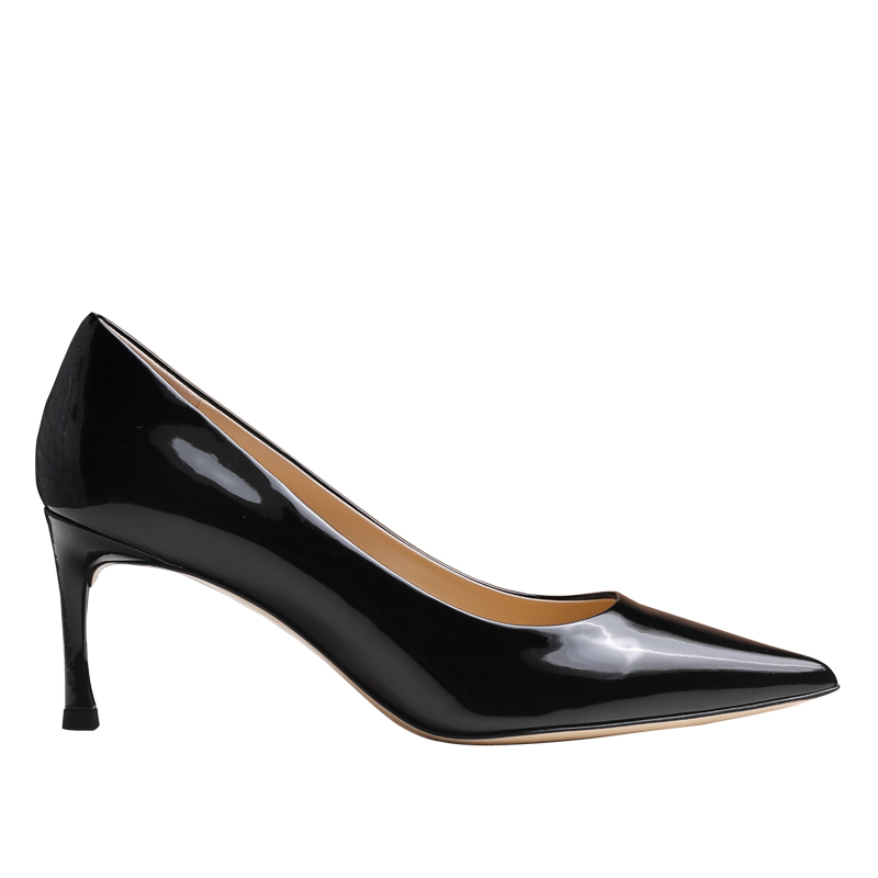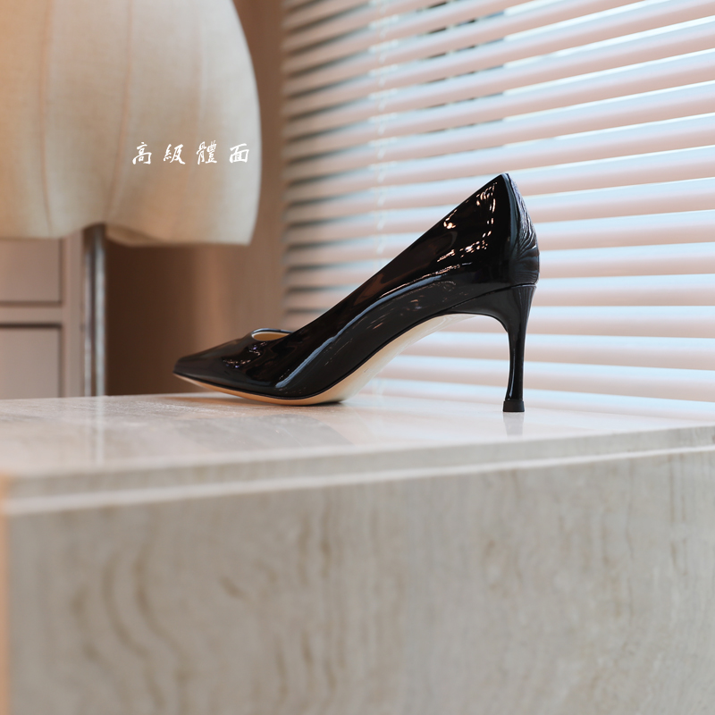 太高级了!7CM黑色镜面牛漆皮 如履平地工作鞋高跟鞋(真皮大底)