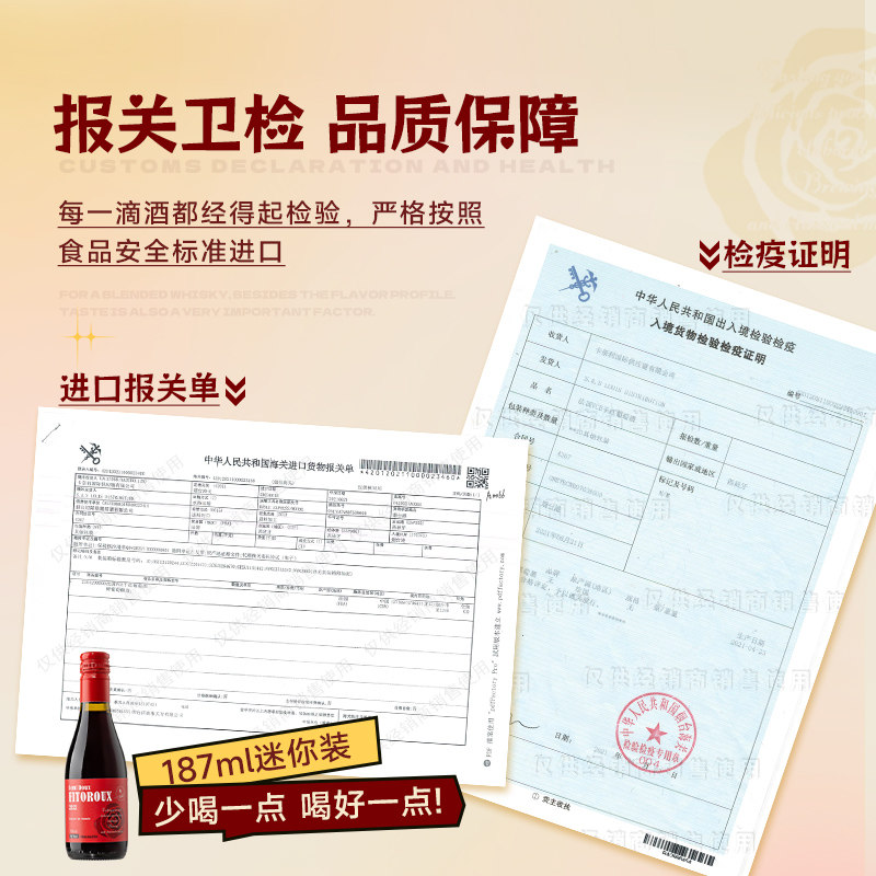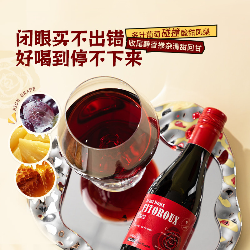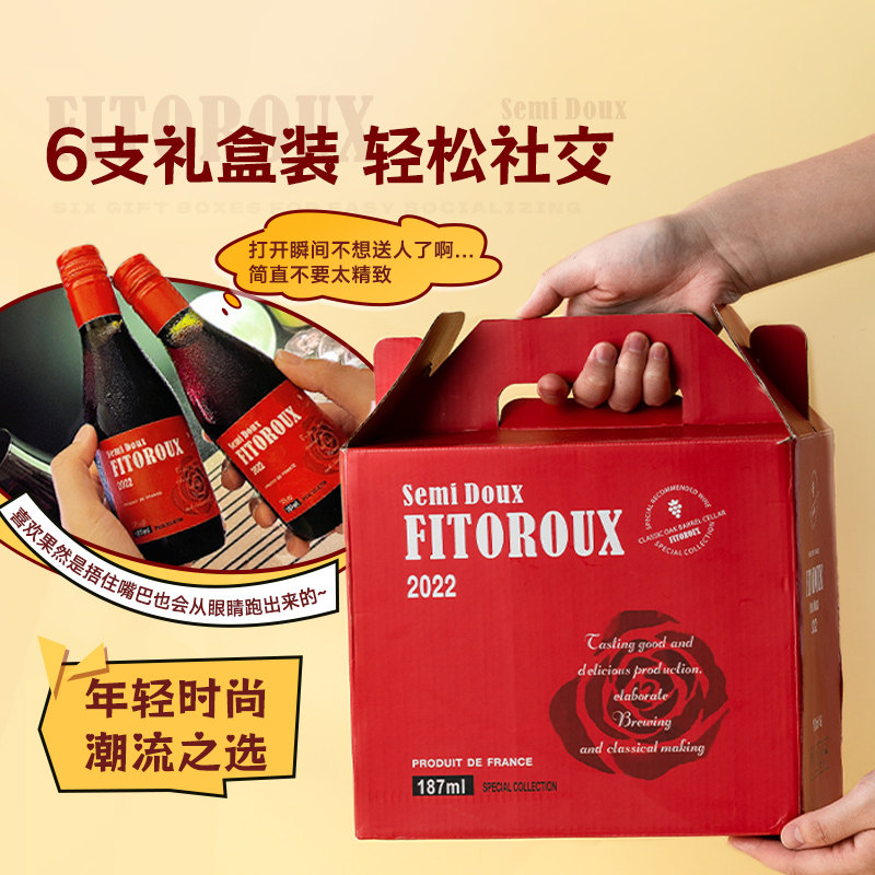 【自营】法国小瓶红酒187ml6支装半甜红葡萄酒干红女士微醺晚安酒