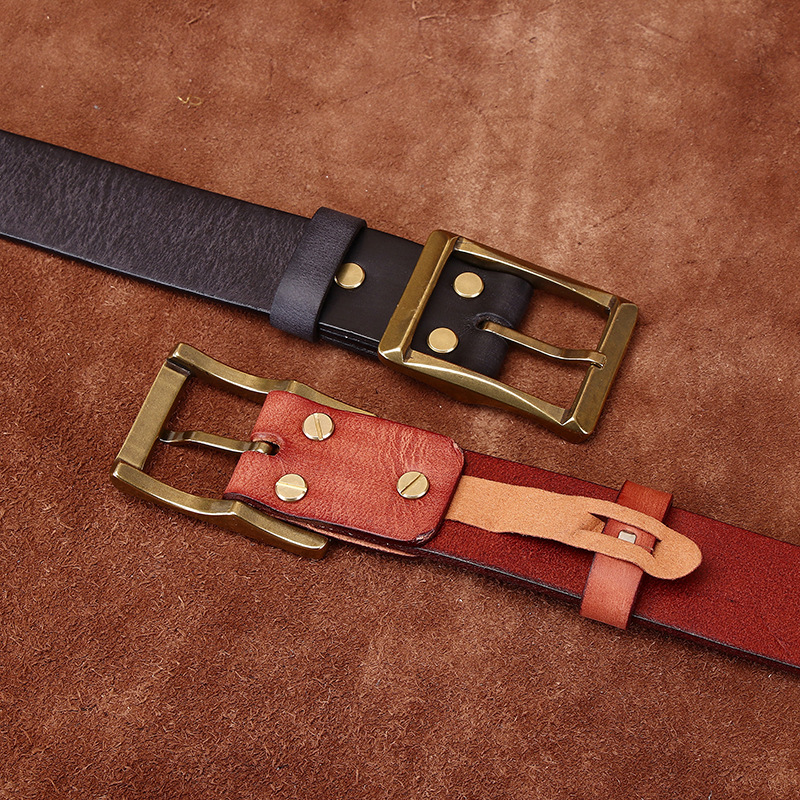 原创植鞣头层牛皮手工皮带男真皮纯铜针扣腰带美式复古做旧腰带潮