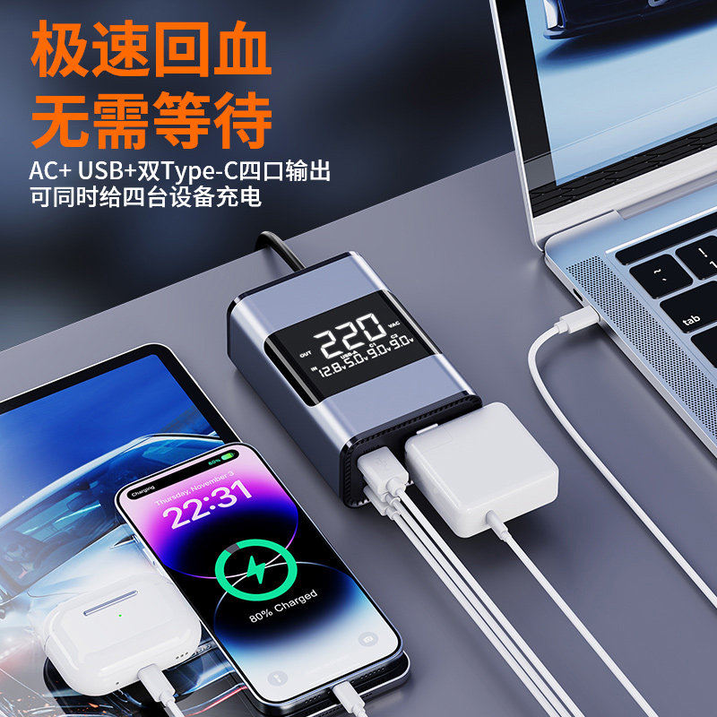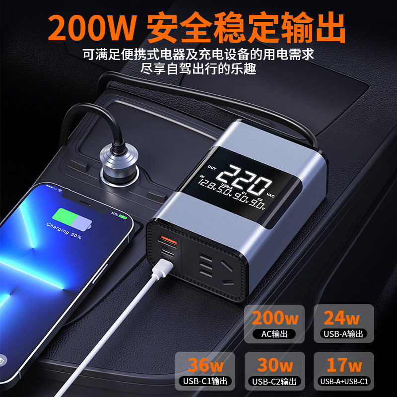 新型车载逆变器12v24v转220v大功率逆变转换器汽车充电器快充插座