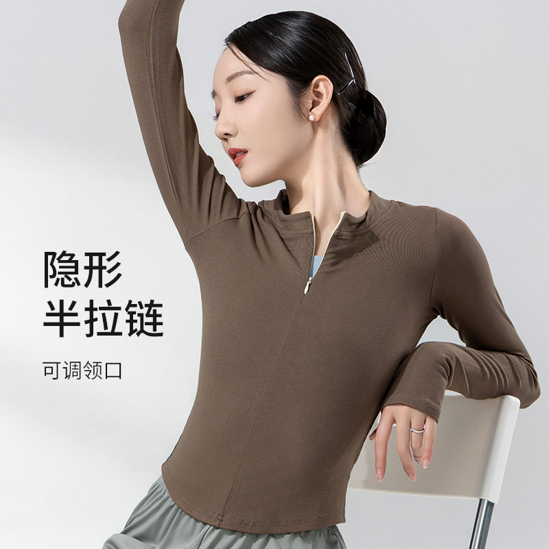 众爱舞苑舞蹈练功服上衣修身女款黑色长袖套指上衣中国舞民族舞服