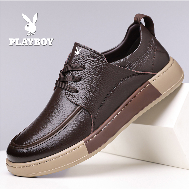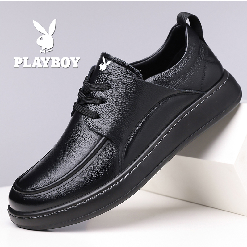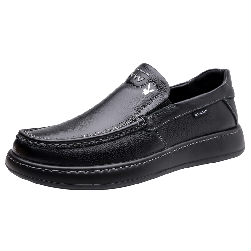 花花公子男士皮鞋真皮商务正装一脚蹬软底软面中老年爸爸休闲皮鞋