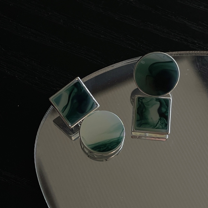 绿野仙踪 晕染纹耳钉复古法风板材切割几何设计高级感耳环不对称