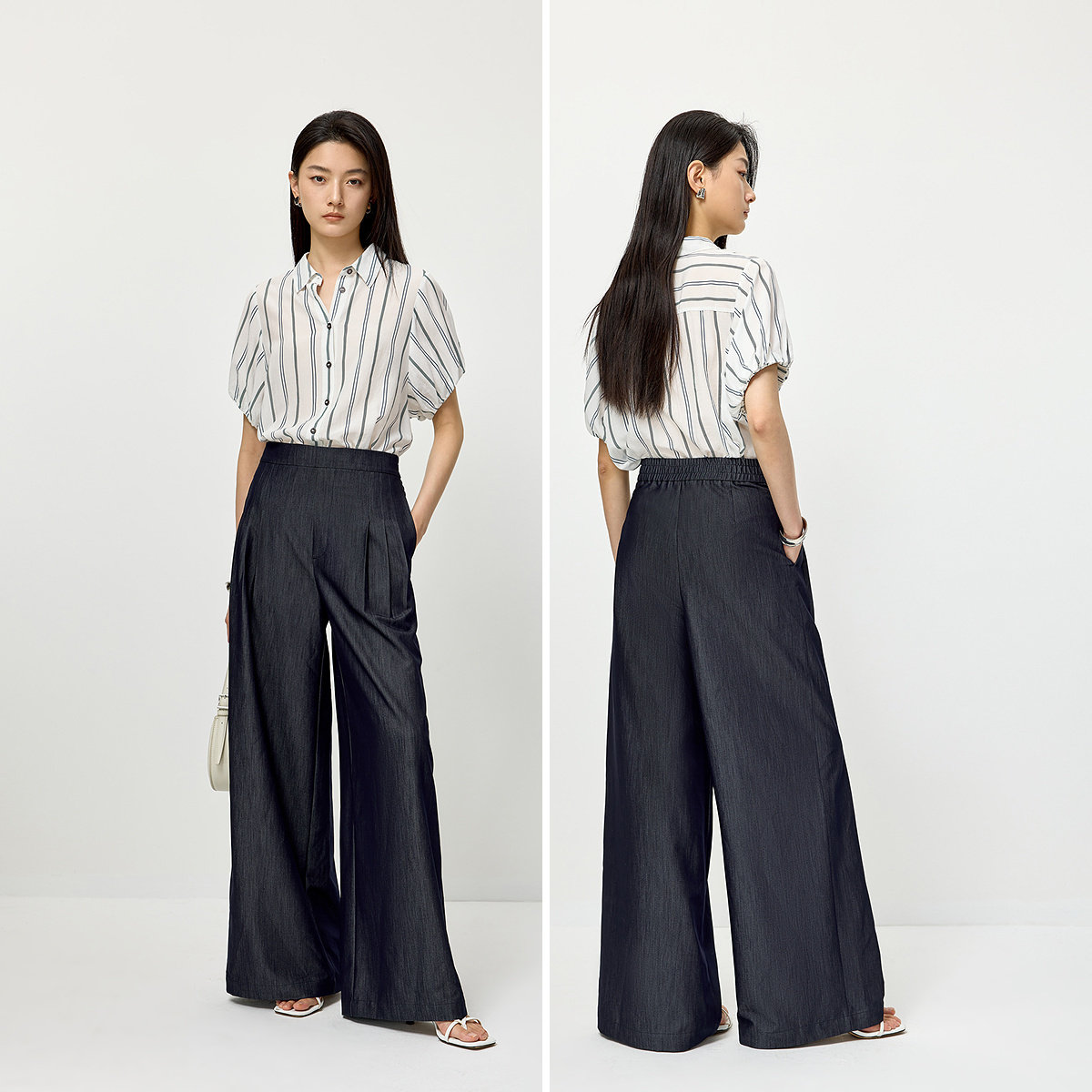 LILY2026夏新款女装复古垂感气质宽松通勤百搭深色大阔腿裤休闲裤