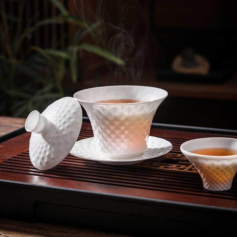 潮州骨瓷盖碗薄胎高档白瓷家用冲茶杯泡茶器功夫茶具配套送礼盒装