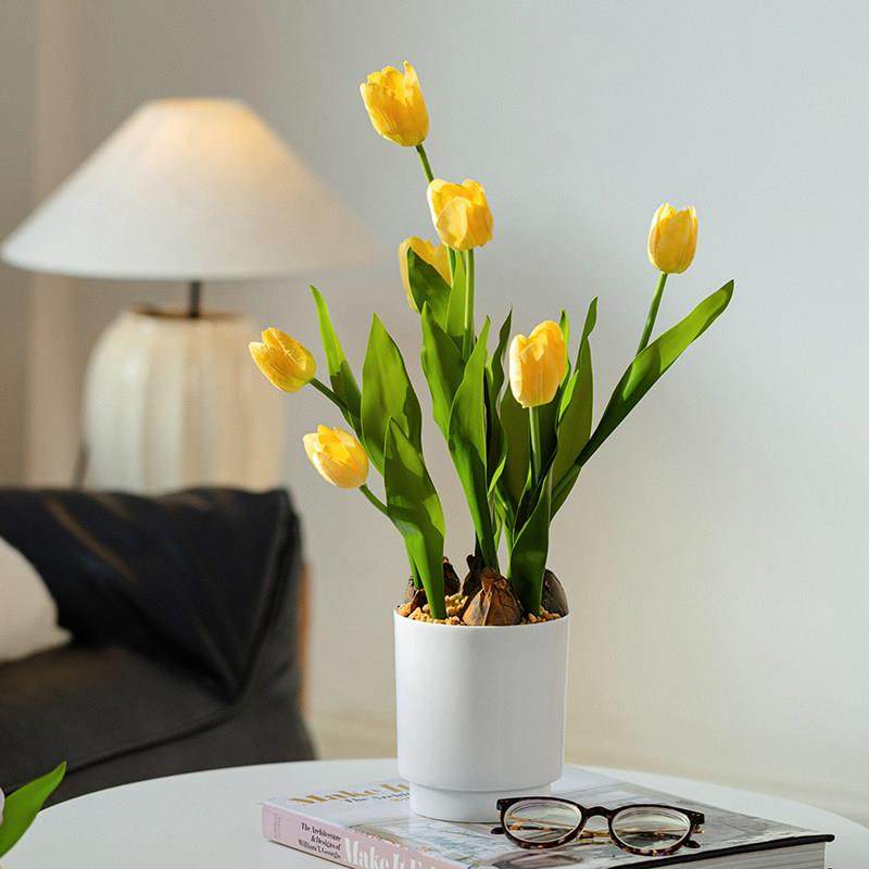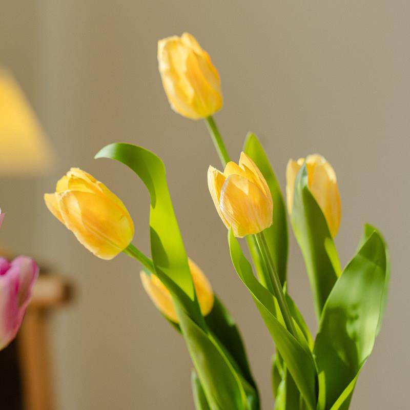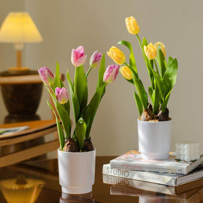 掬涵郁金香仿真花摆件手感假花盆景客厅桌面干花装饰高级仿生花束