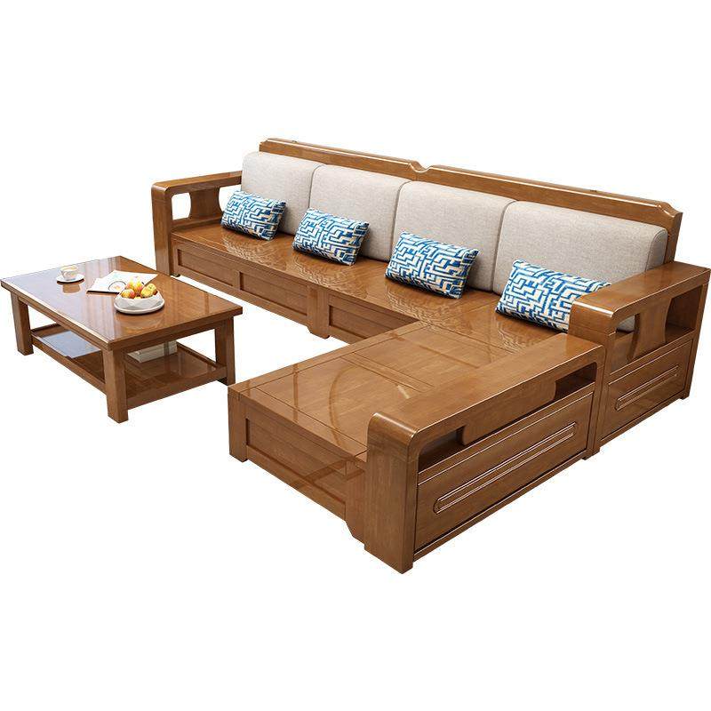 中式实木沙发简约客厅大小户型冬夏两用高箱储物转角布艺沙发组合