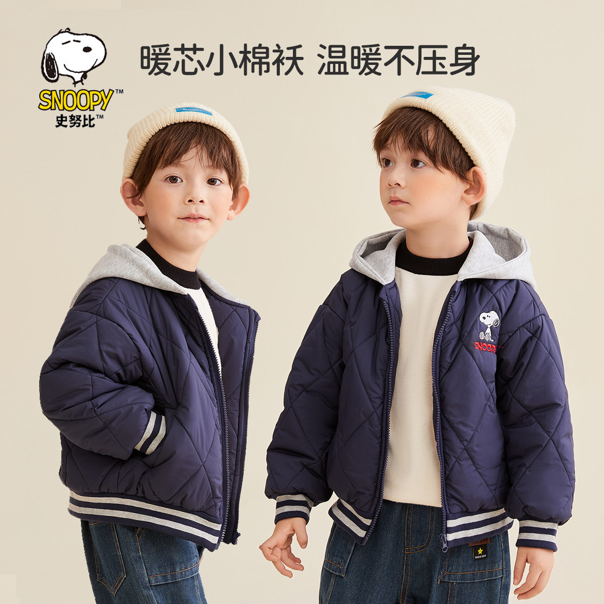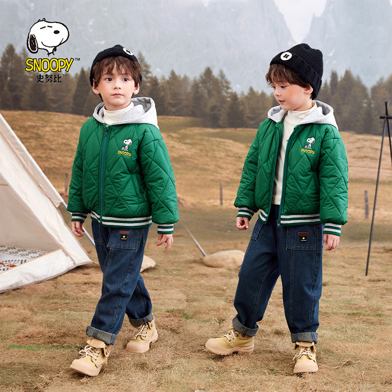 史努比男童棉服2025新款小童棉袄冬季儿童装加绒夹棉外套女童棉衣