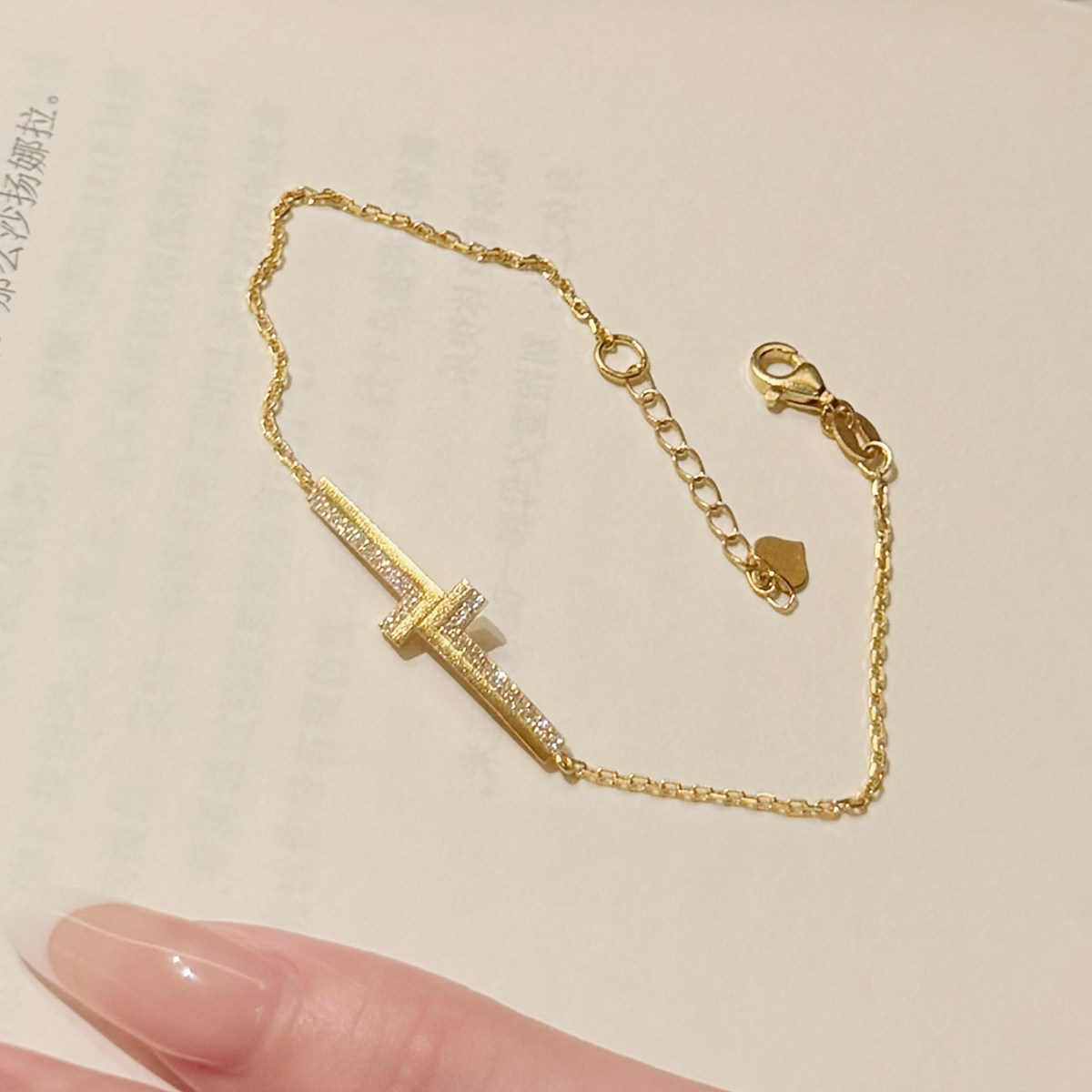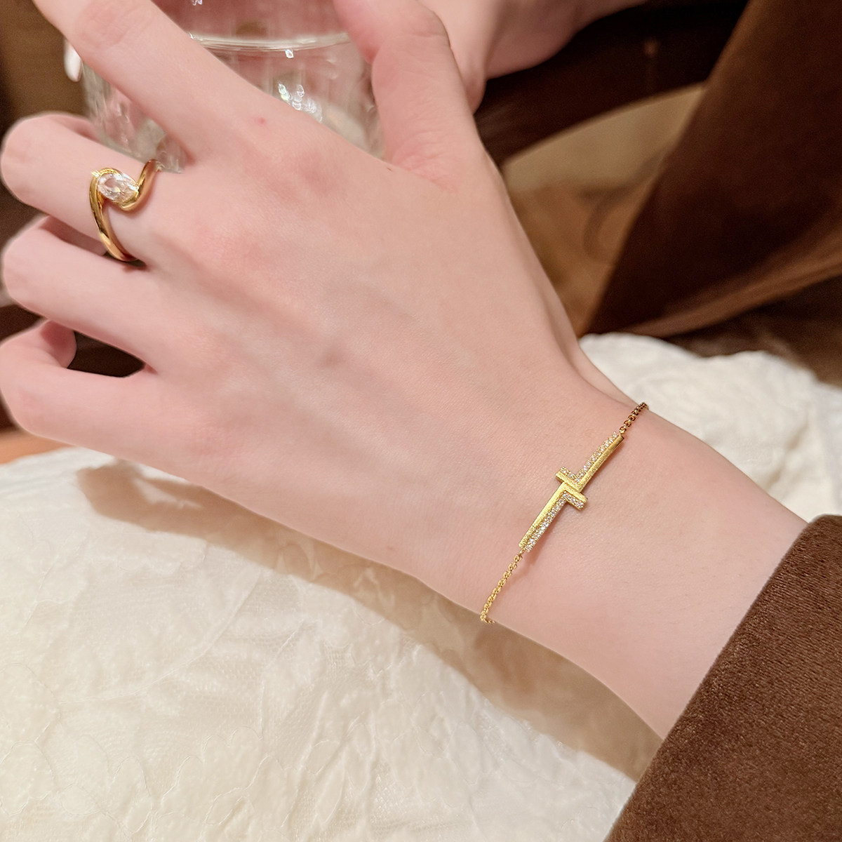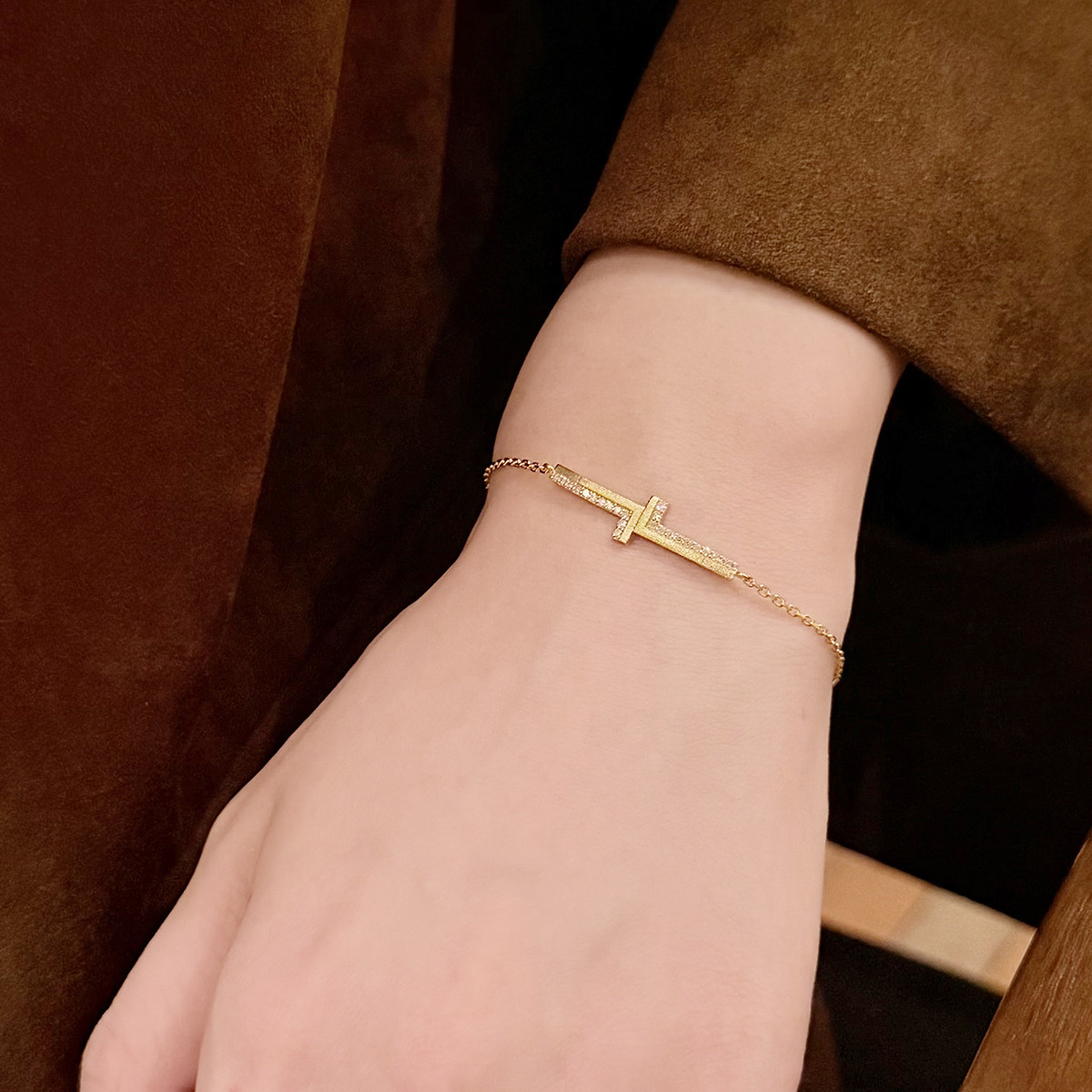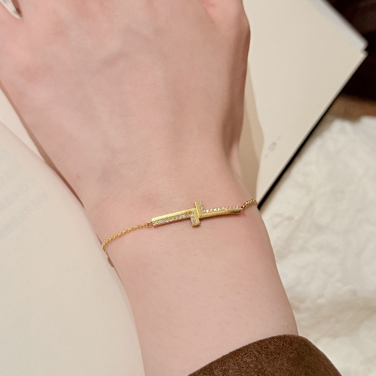 吉盟珠宝999足金点钻手链女款黄金手串个性时尚双长T高级感ins风