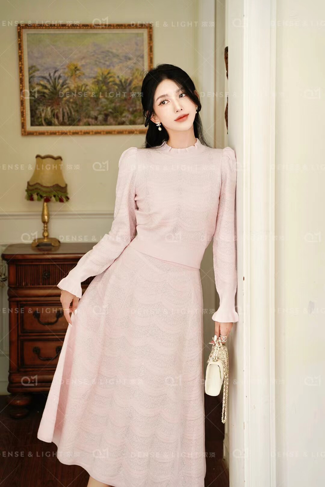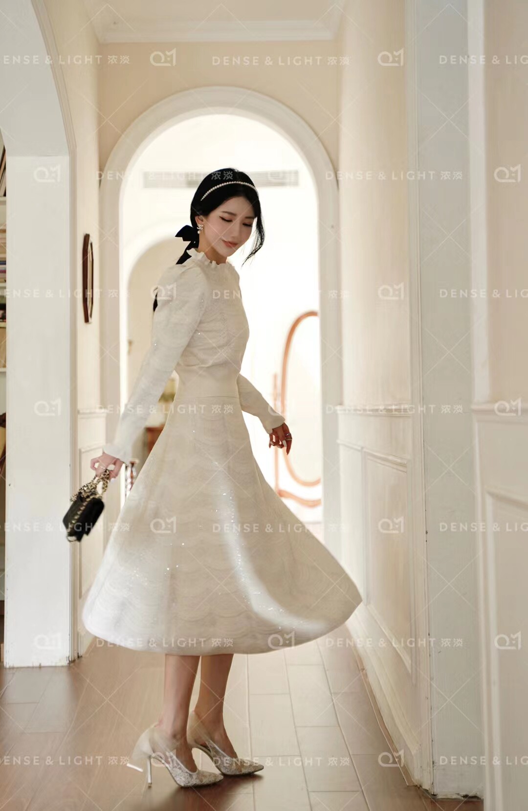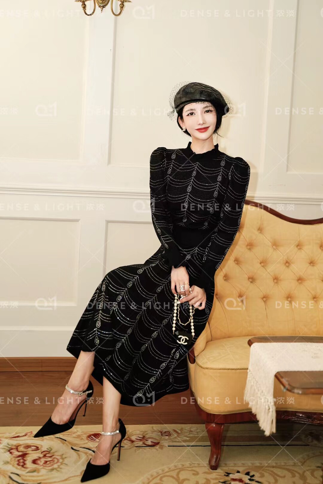 韩系赫本风重工烫钻年会礼服裙高端精致气质名媛圆领上衣伞裙套装