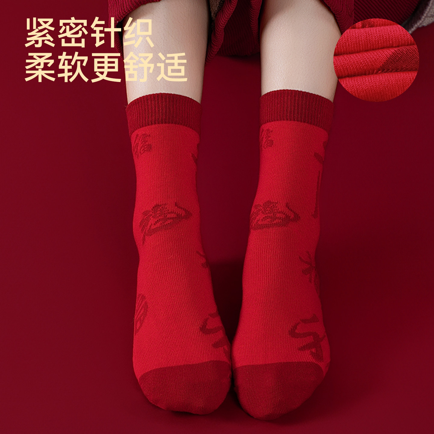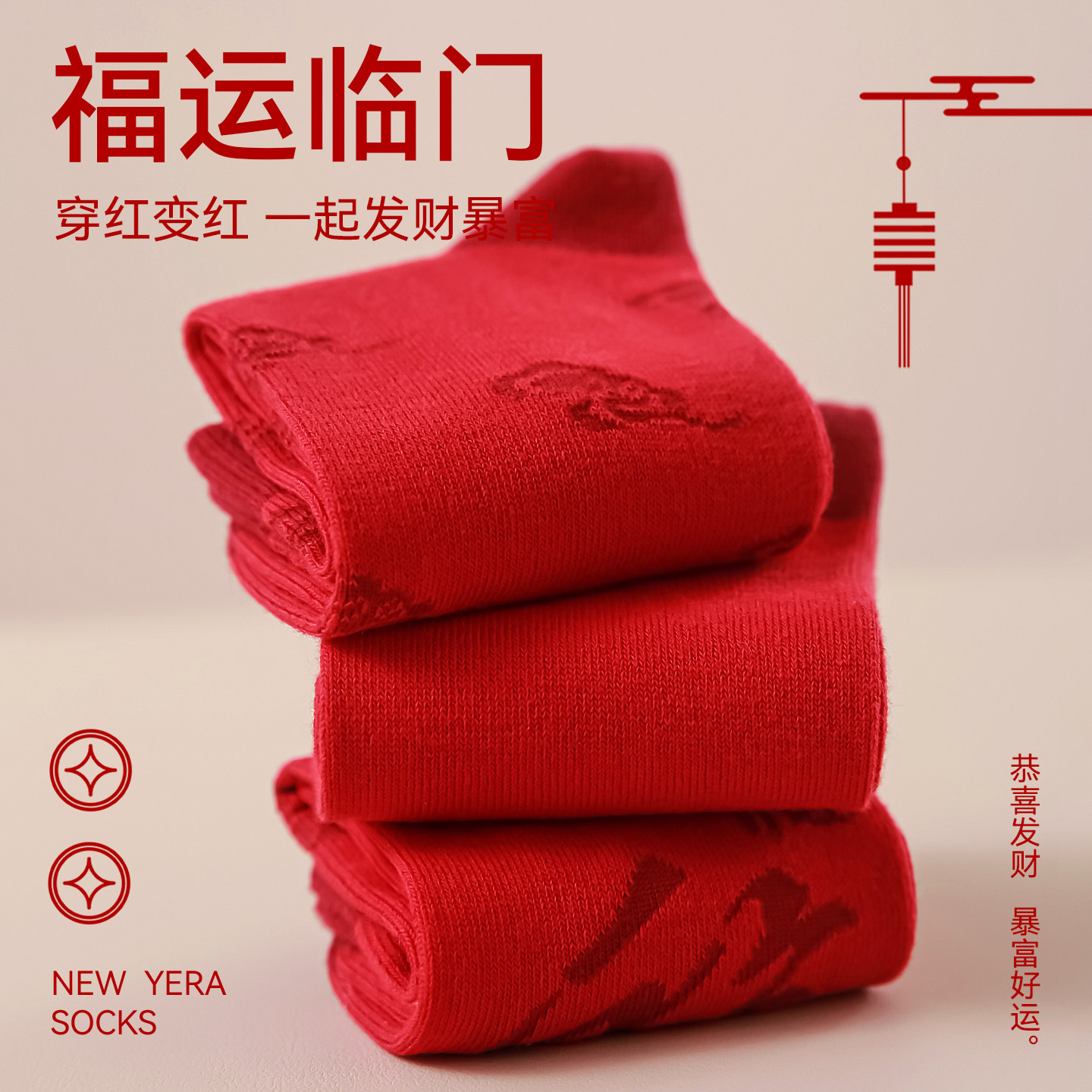 猫人马年本命年红袜子女生纯棉中筒袜2026马年结婚情侣款红色袜子