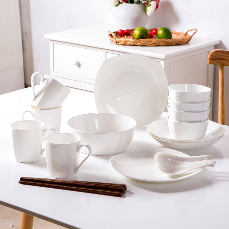韩式简约饭盆厨房骨瓷餐具碗碟套装陶瓷中式碗盘家用家庭套餐4人
